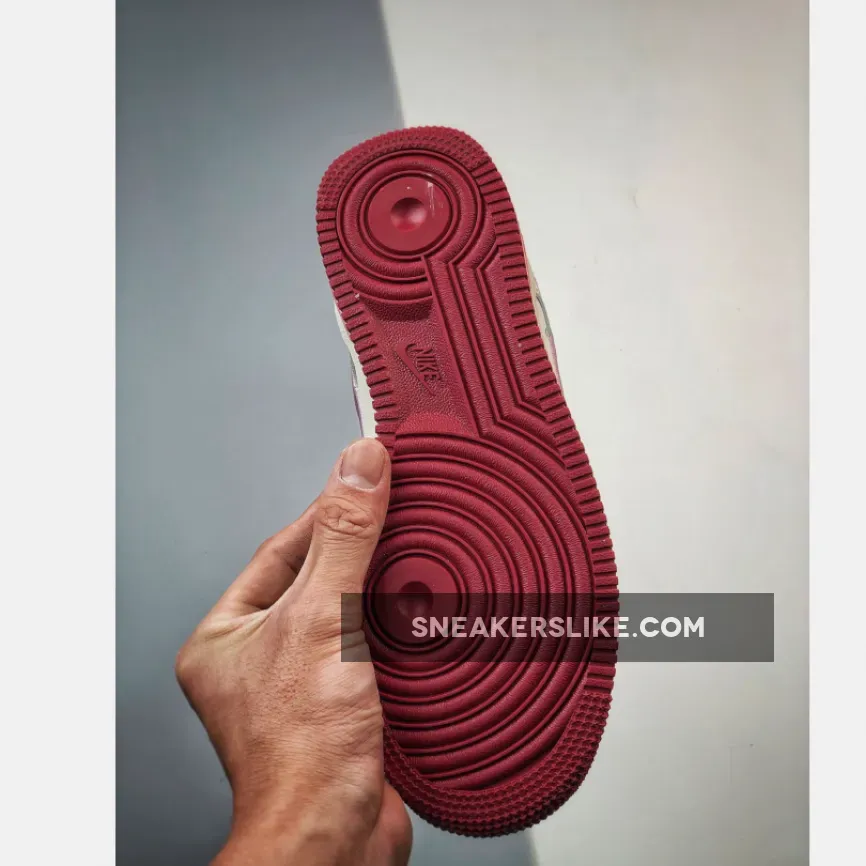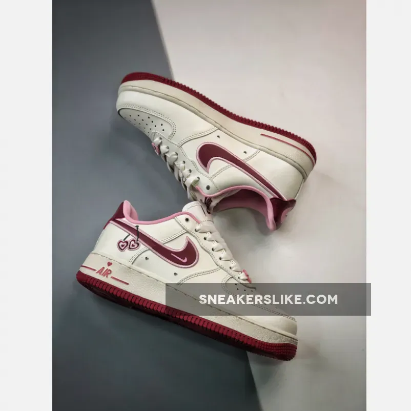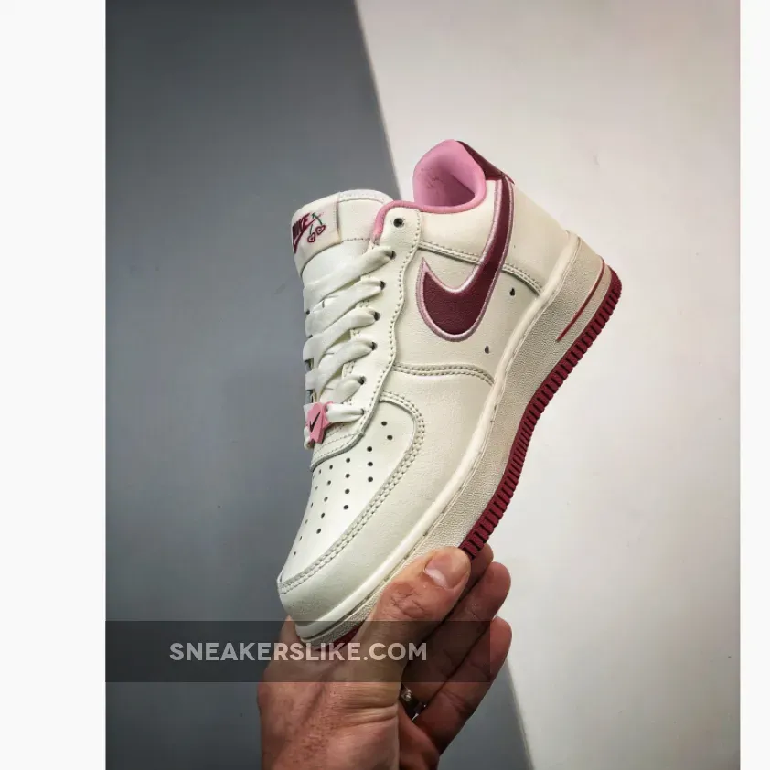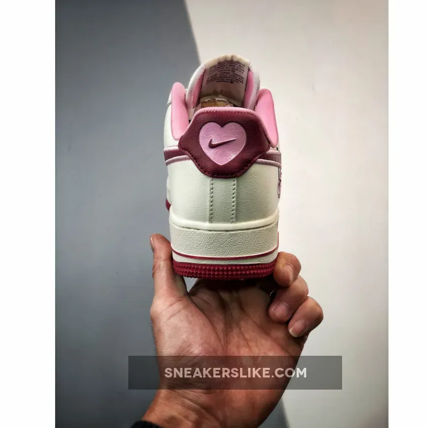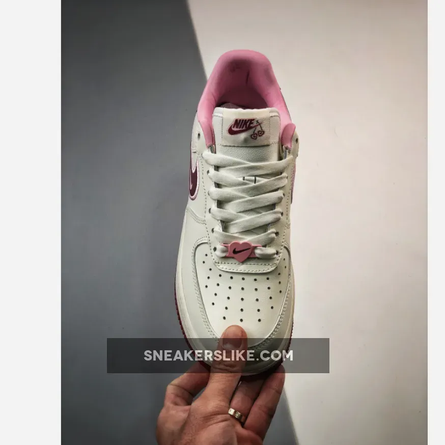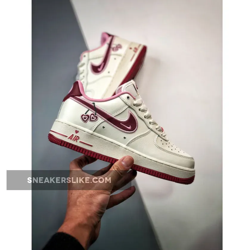 “I’m thoroughly impressed with my Valentine’s Day Air Force 1s! The sail leather upper is surprisingly durable, and the burgundy accents add a touch of sophistication. The heart-shaped details are adorable, not too over-the-top. Comfortable fit, too. Overall, a solid purchase – would recommend!”