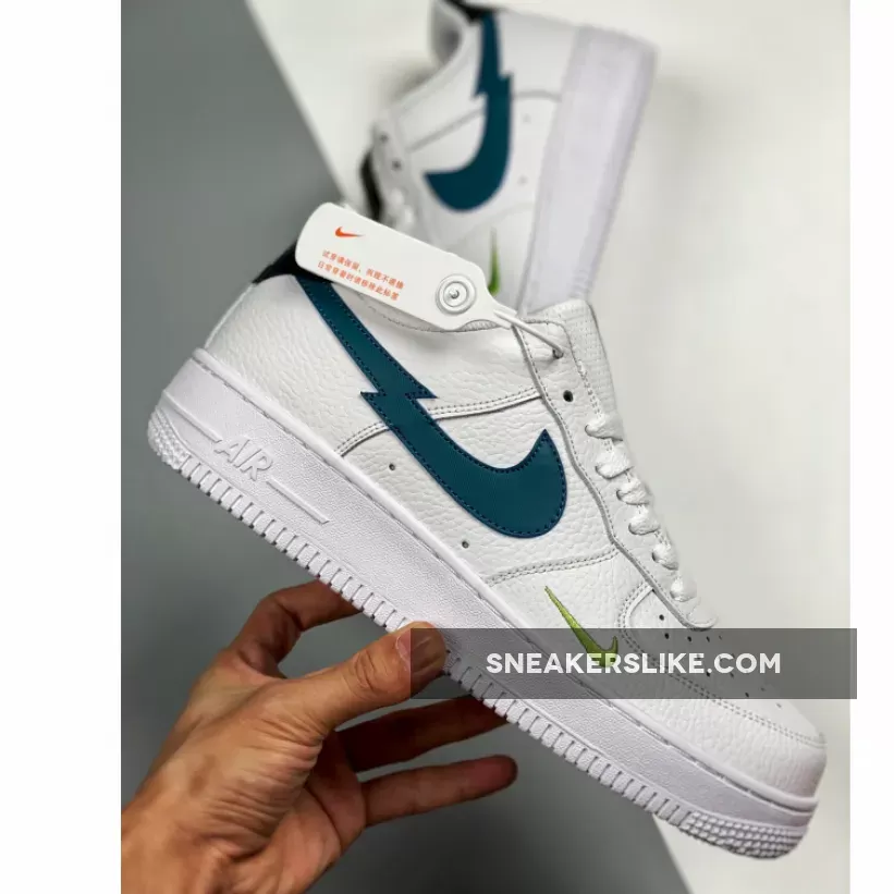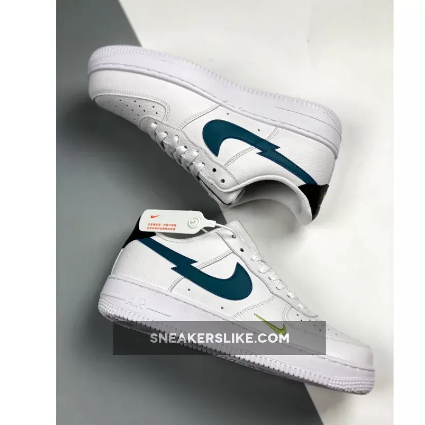 Regardless of the colorway, the Air Force 1 remains a legendary icon not only in the hardwood court but also on the streets.Official images of this low-top silhouette show the construction crafted with tumbled leather throughout for a premium feel. Hued in pristine white throughout, signature components that Nike designer Bruce Kilgore put in place are still featured on this iteration such as the perforated toe box and chunky Air unit beneath the feet that provides optimal comfort and cushioning.Across the sides, Nike’s classic branding is withdrawn and replaced with their all-new lightning bolt Swoosh instead in a teal colourway, overall adding a significant look while delivering a pop of contrast. The colour scheme is further elevated with a black heel panel and a mini-sized Swoosh embroidered on the lateral toe in a lime tone.What is there not to love about the Nike Air Force 1 White Aquamarine Lightning Bolt? Not only will it complement your outfit, but you also don’t have to worry about any discomfort. Though before you add these to your rotation, make sure you check our Air Force 1 size guide so you know how they fit and keep it locked in right here at Our Store Supplier for all the latest footwear news.