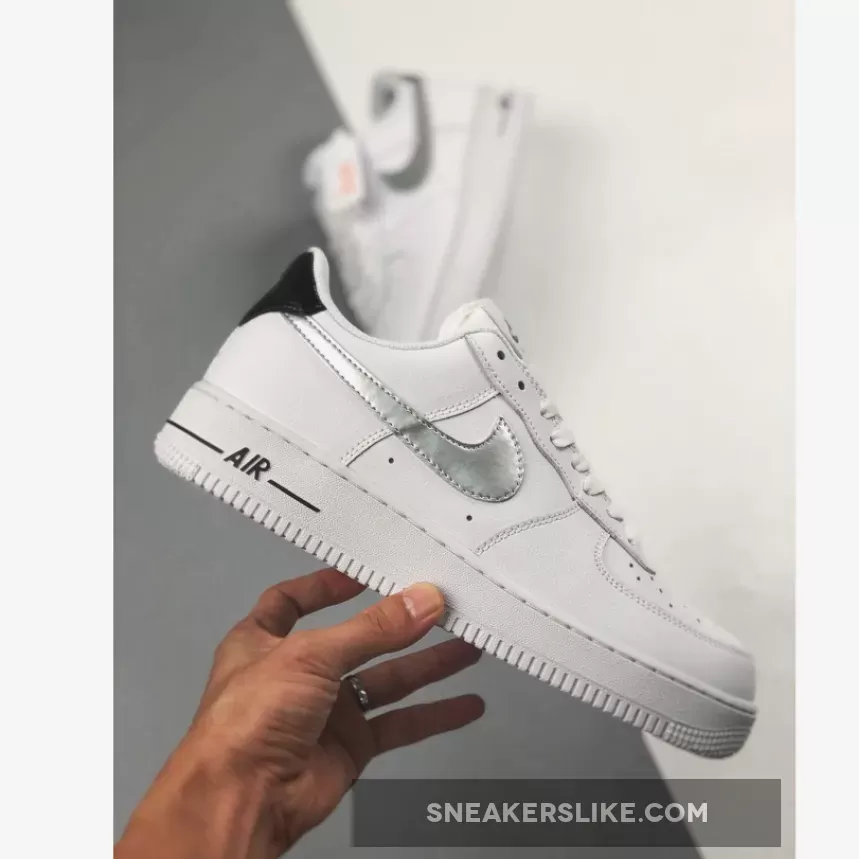 Solid design on the Air Force 1 Low White Black Metallic Silver! Breathable perforations and leather overlays offer comfort and durability. Nike Air cushioning delivers smooth support. Clean colorway makes these versatile for any outfit. Great choice for casual wear!