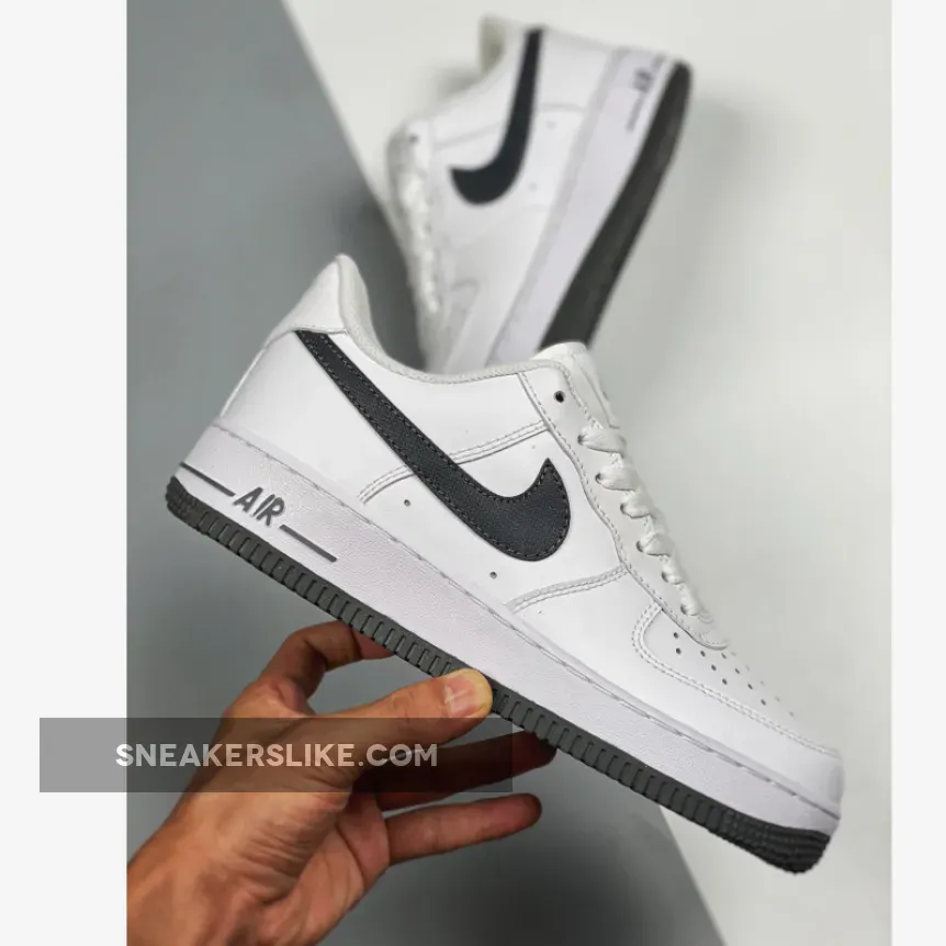 this Nike Air Force 1 Low comes covered in White leather across the base and an added overlay around the heel. In addition, Grey textile covers the Swoosh along with Black branding and unique stitching on the heel.