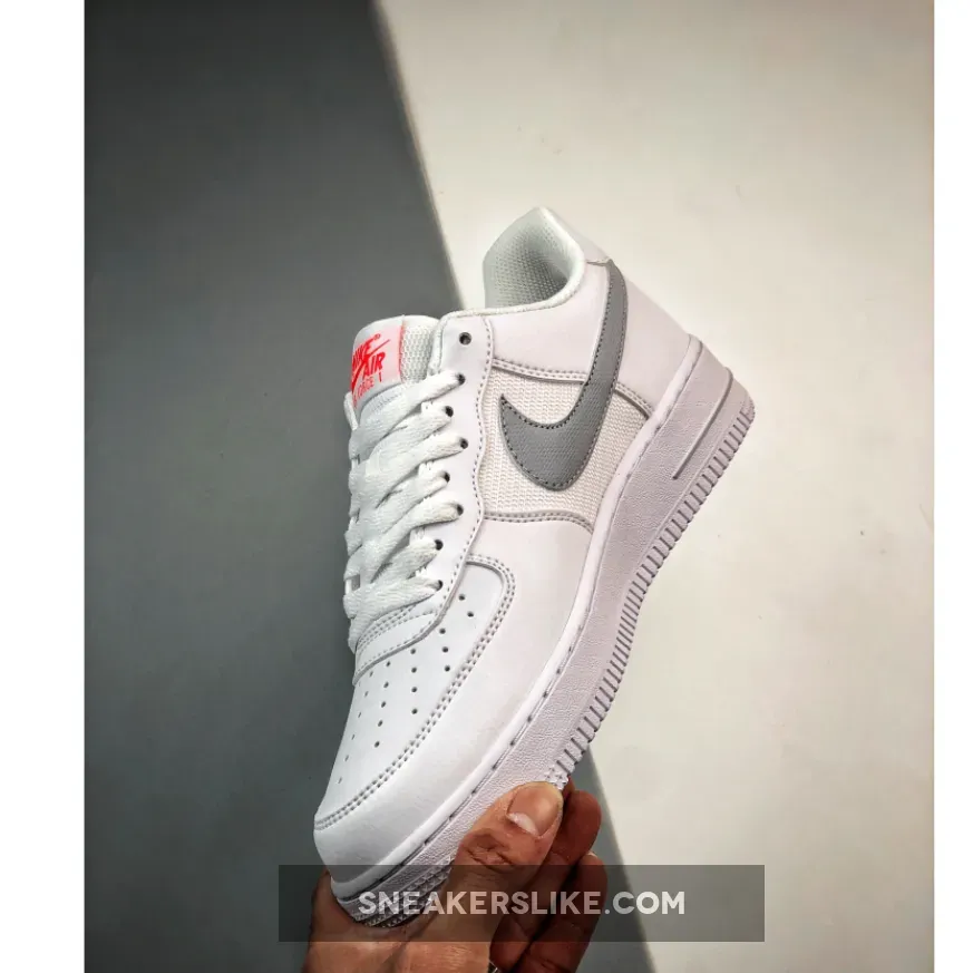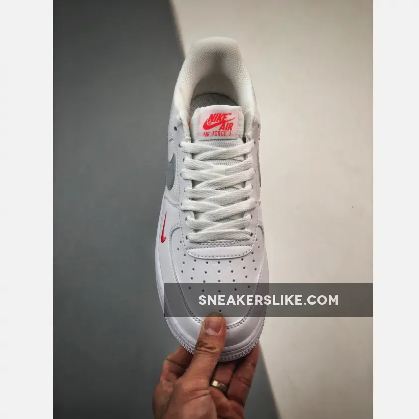 “I’m thoroughly impressed with the Nike Air Force 1 Low GS White Grey Crimson! The quality is top-notch – smooth leather toe box, ballistic mesh panels, and crisp white sole. The color combo is sleek & stylish, making it a great addition to my sneaker collection.”