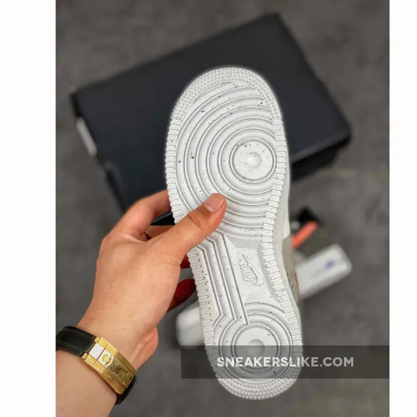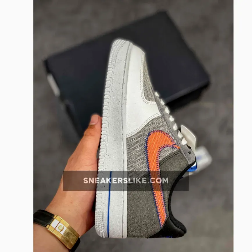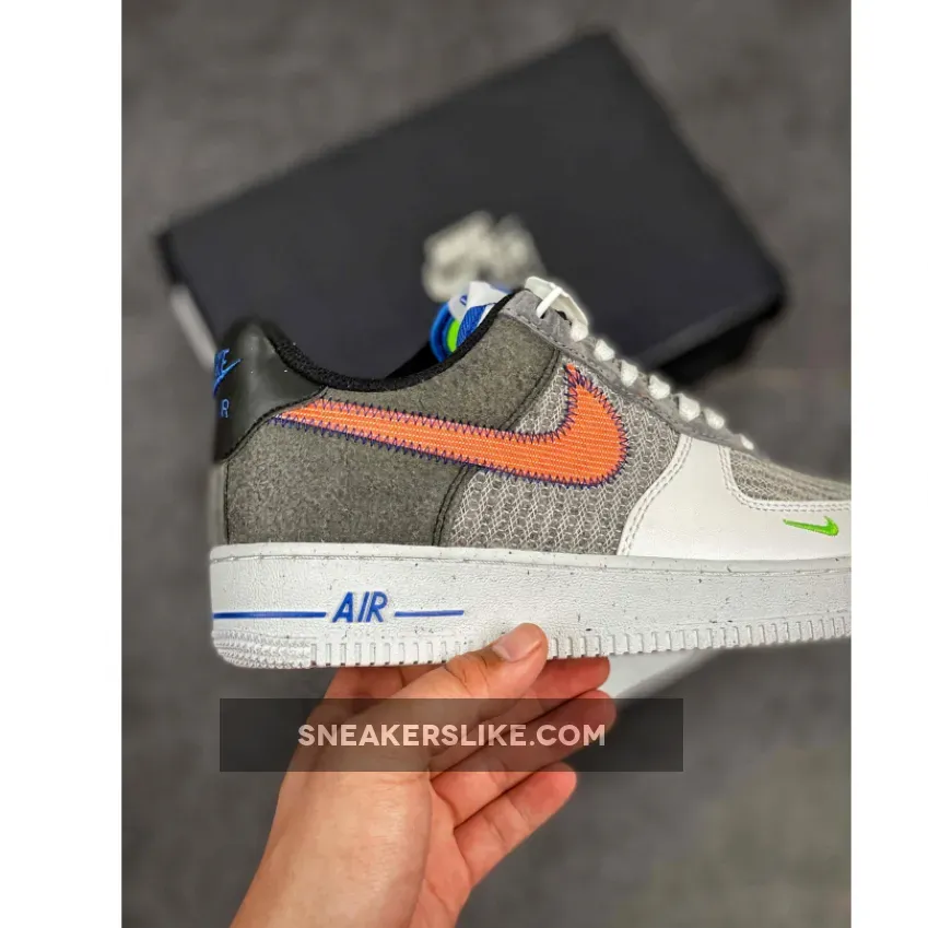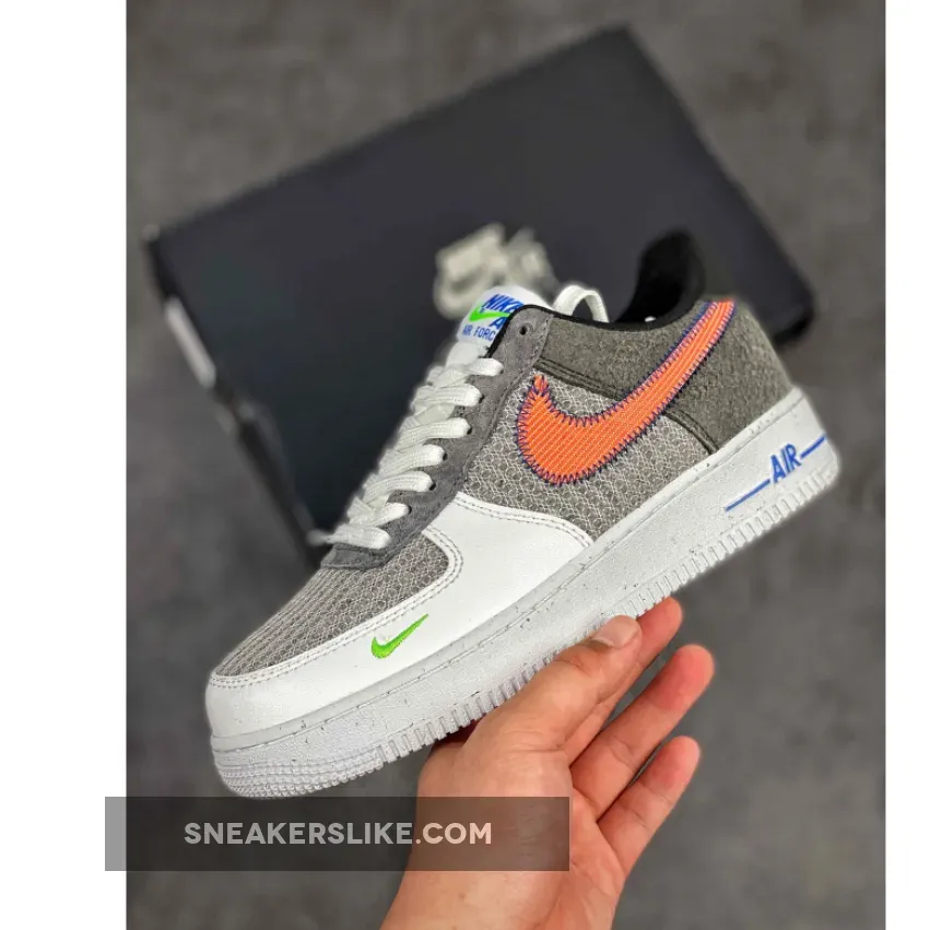 .Bruce Kilgore’s creation in 1982, originally designed for the basketball court, is seen more as a fashion staple in this era. The forthcoming AF1 features recycled yarns that overlay the panels, including the toe box, this silhouette is as sustainable as it gets. Decked out in a grey colour palette, detailed look shows its upper layered structure crafted in a cunning wool-like material. Descending upon its lateral side is Nike’s iconic swoosh in a crimson orange tint that is firmly sewn on by contrasting royal blue stitches. Speckles dash across the ashen grey midsoles while it supports Kilgore’s architecture providing optimum comfort and durability for the wearer. Highlighting the pair is its leather mudguard dipped in a premium white colorway thus giving the mini neon green swoosh embroidered on its lateral toes the centre of attention.