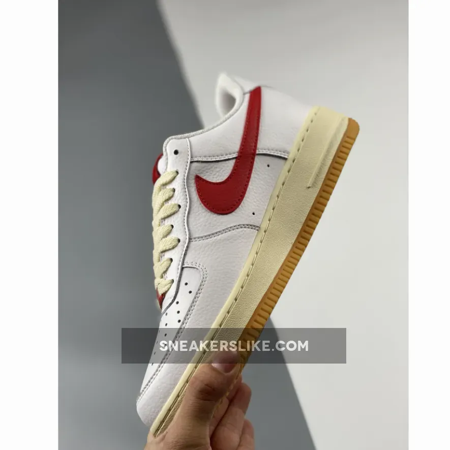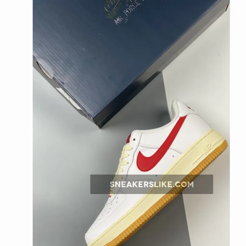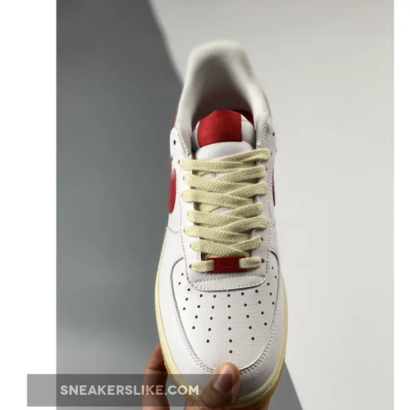 Similar to the construction of its recent “Color Of The Month” series, a premium tumbled leather encases the entirety of the crisp white base layer, save its tongue construction which dawns a heavily perforated makeup. This Nike Air Force 1 Low comes with White leather on the upper with the signature perforations. Next, Red tumbled leather lands on the Swoosh logos, tongue labels, heel branding, lace locks, and insoles. Other details include aged laces and midsole, along with a Gum rubber outsole.
