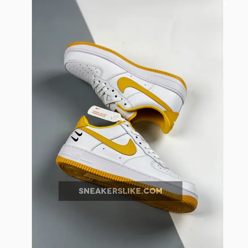 This edition of the Nike Air Force 1 Low features a White leather upper with Wheat nubuck Swooshes and heels and matching lining and rubber outsole. Highlighting the shoe are dual embroidered Swooshes on the lateral heel.