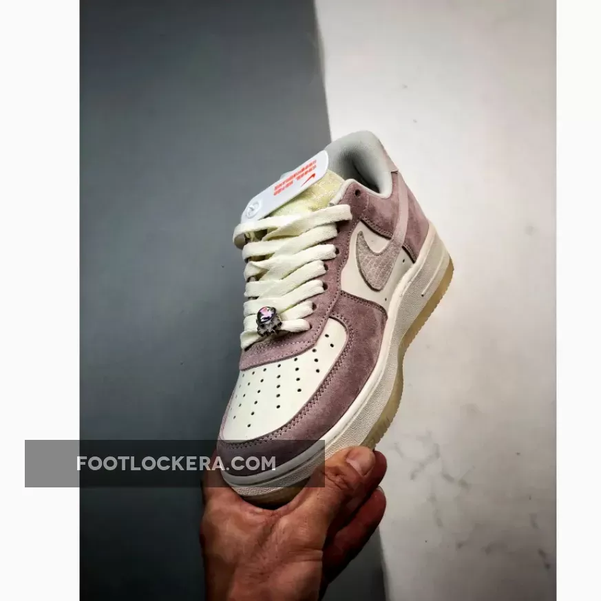 The Air Force 1 Low’s facade is a serene portrait in soft pastel pink suede, set against a backdrop of ivory leather uppers, an interplay that captures the yin and yang of tranquility and strength.
