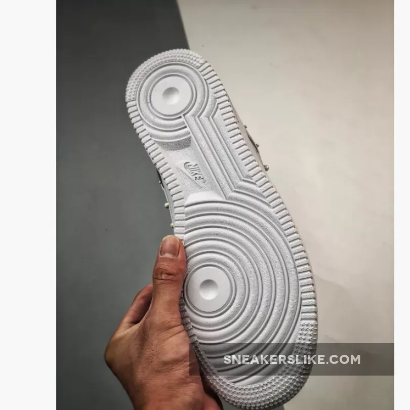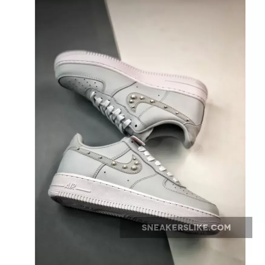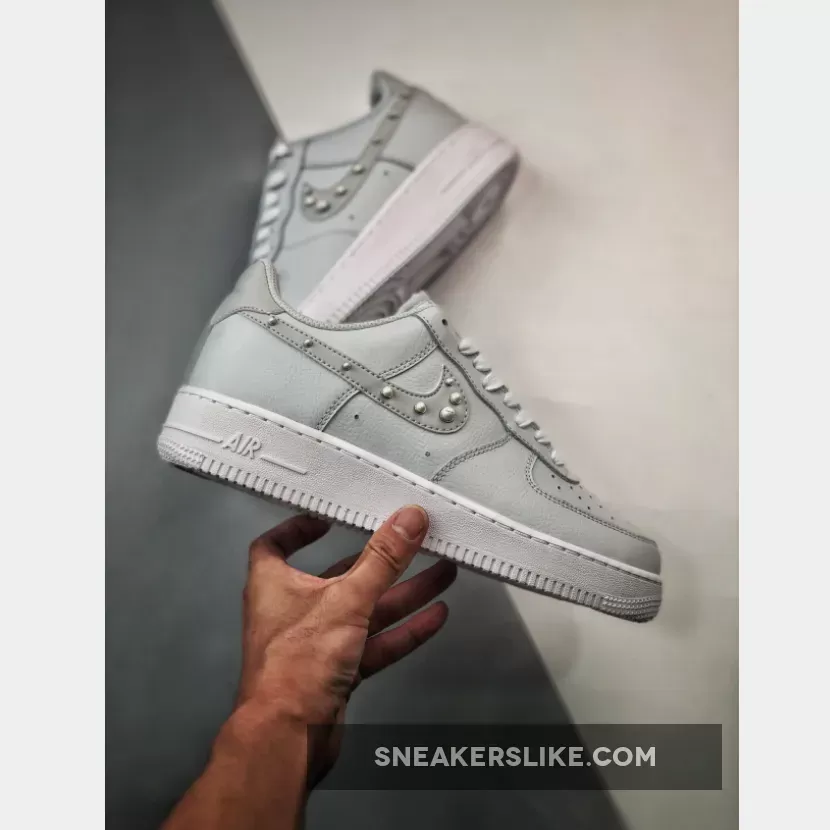 As part of its 40th anniversary, the Nike Air Force 1 slips on some pearls. Succeeding an all-white pair of AF1s featuring pearl studs, the “Pearl Collection” continues with the Nike Air Force 1 Pearl Swoosh. This AF1 has a light grey pebbled leather upper with a luxe leather tongue tab and a perforated toe box. A Nike Air logo is embossed on the leather heel tab.