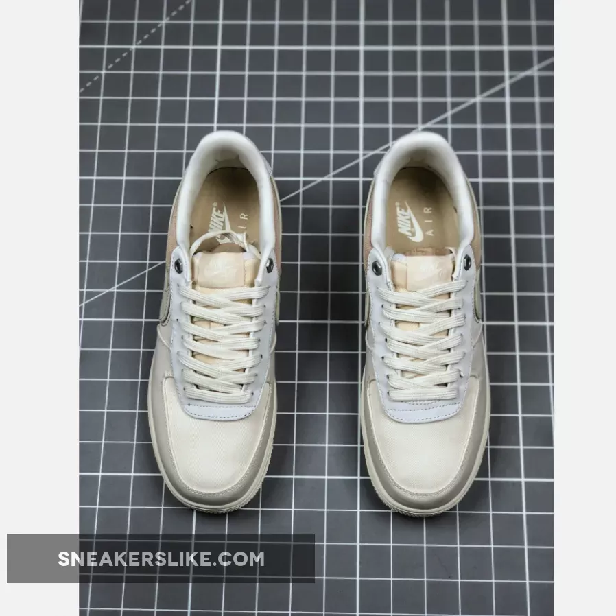 Each year designers introduce new stories, themes, and colorways that continue to evolve and redefine what the Air Force 1 means to a new generation. This premium version features tonal textile uppers, White leather swoosh, contrast heel panel, and a vintage Cream-colored midsole.