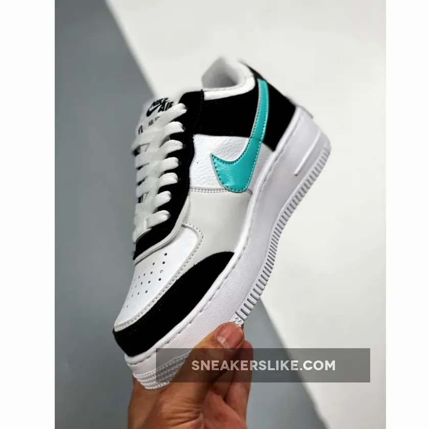 This white, black and blue Air Force 1 Shadow looks fresher than ever in this monochrome colour palette with bright accents of blue that bring a bold flash of colour to the upper. White leather covers the base overlayed with black panels around the toe cap and heel adding a stark contrast.