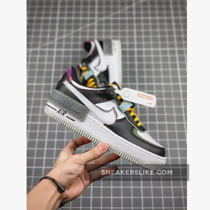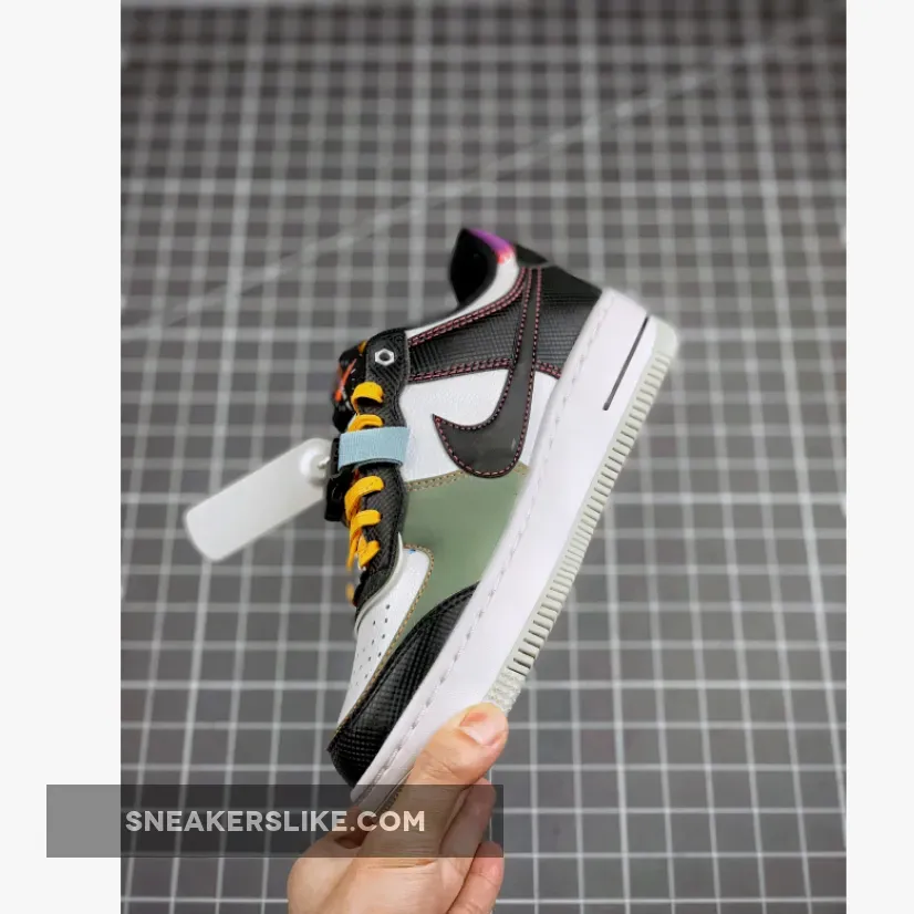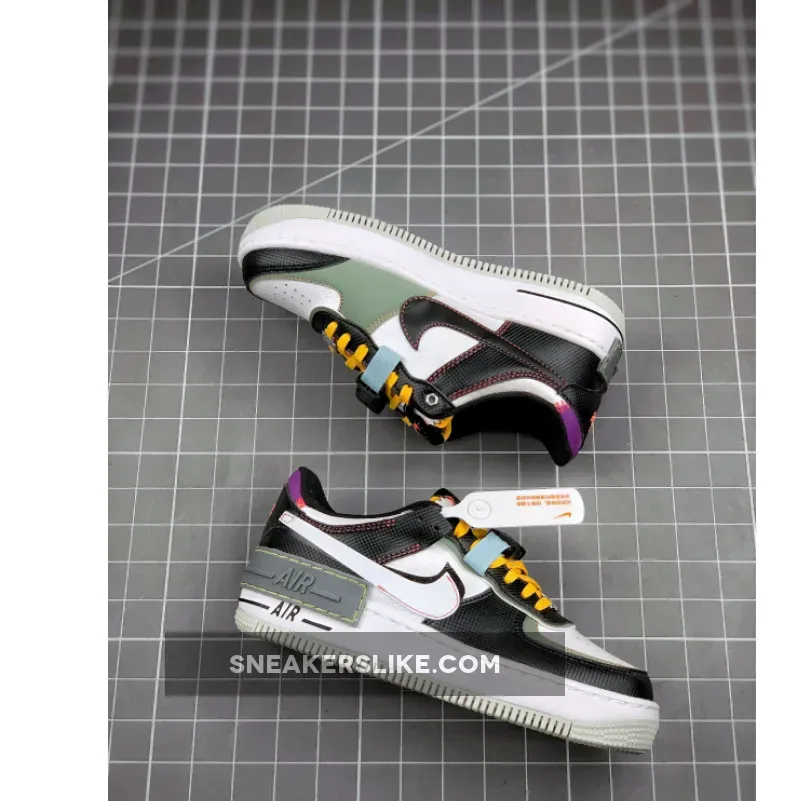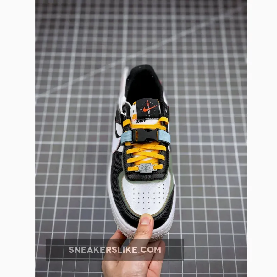 Dressed in a Black, White, and Spiral Sage color scheme. The Air Force 1 Shadow features details that resemble tools used for camping or hiking, like the compass graphics on the tongues and insoles. It comes with extra layers, Neon contrast stitch, and Yellow laces. Much like the rest of the models from the pack, the shoe is completed with a buckle added to the lacing system.