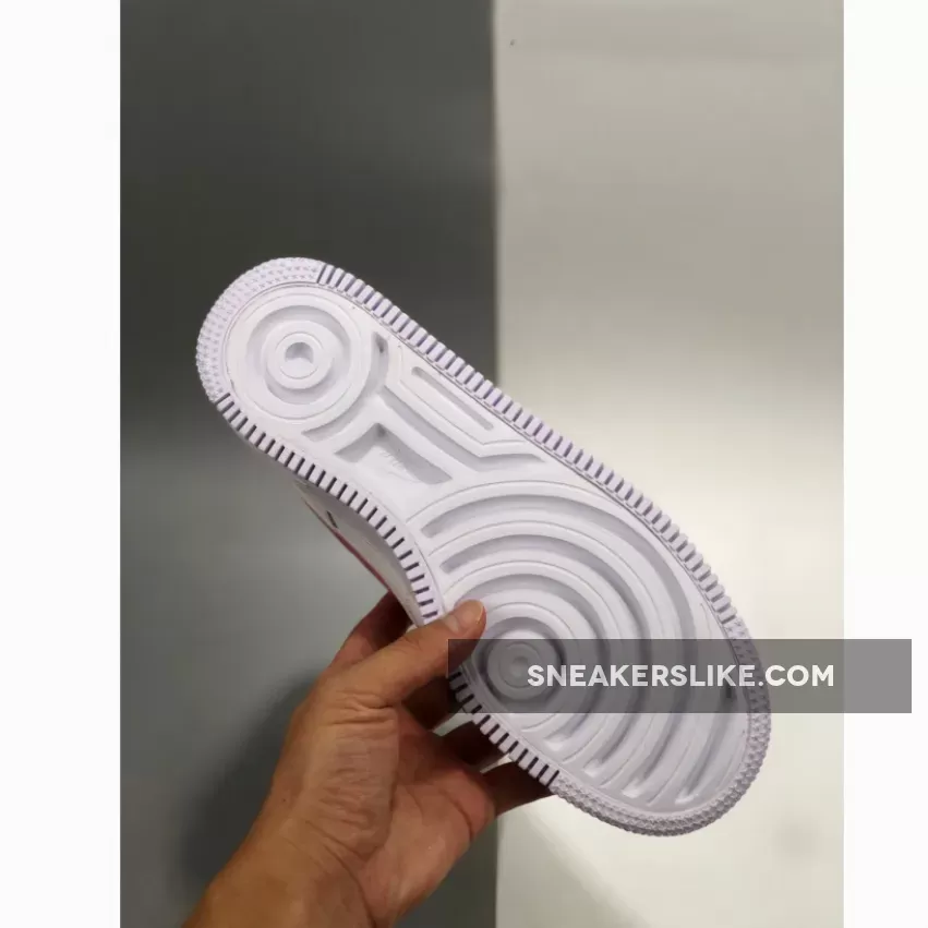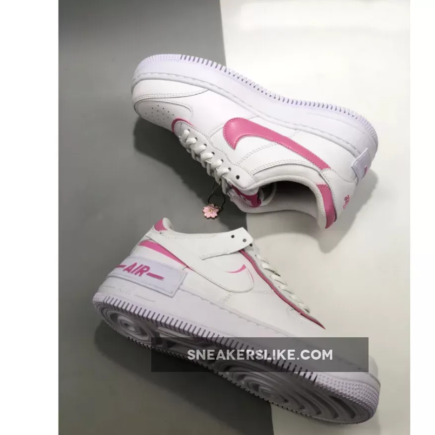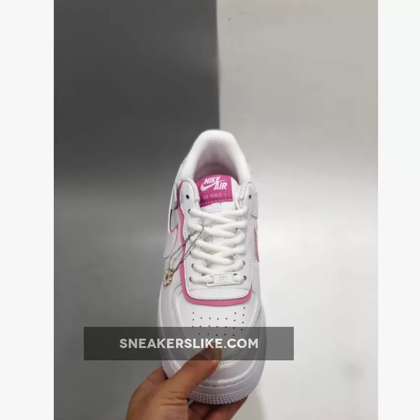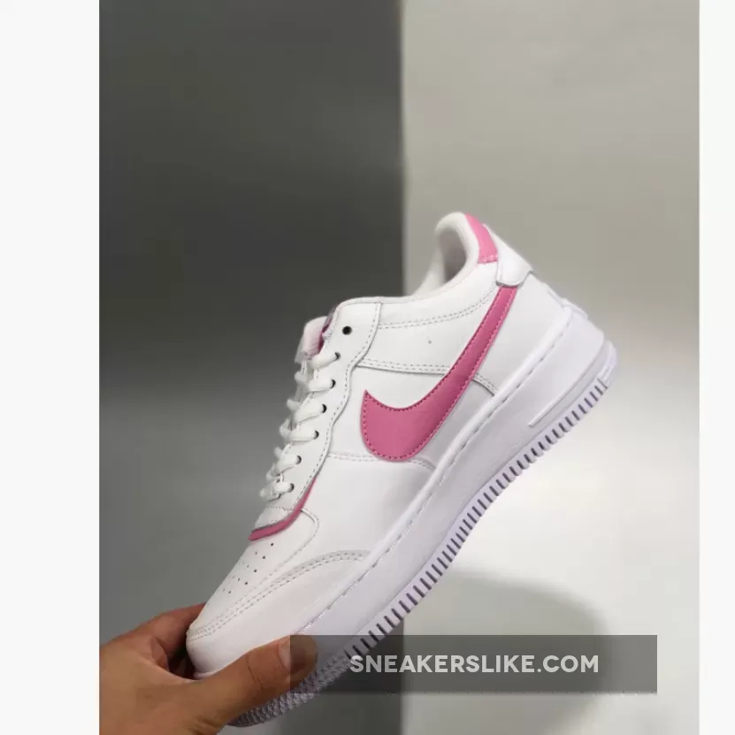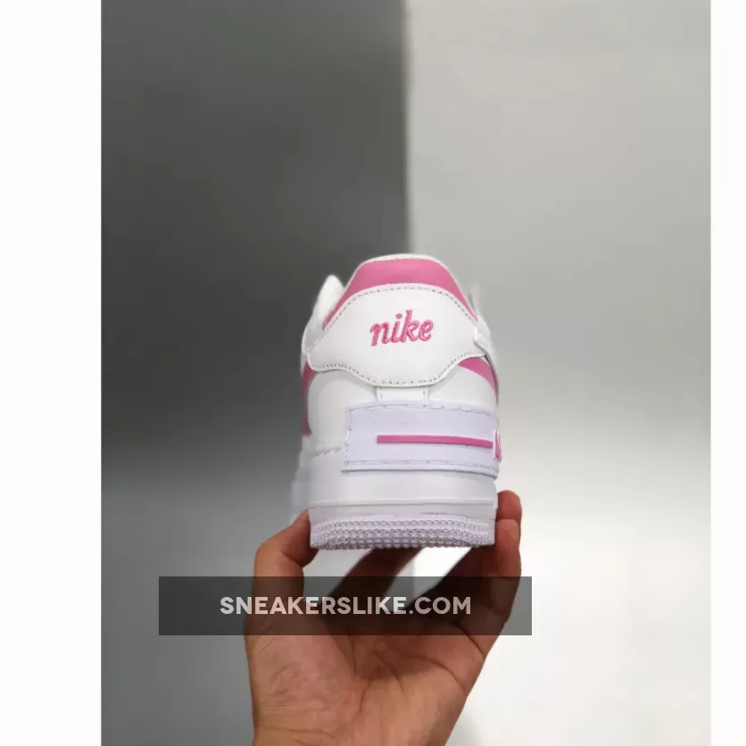 Named after the doubled-up shadow style details, this pink and white Air Force 1 Shadow brings a contemporary look to the old school silhouette. The Swooshes on the medial and lateral sidewalls stand out in pastel pink against the white upper, stretching across both sides of the shoe. The lateral side is finished with a deconstructed overlayed Swoosh that’s stitched in place. At the heel, the classic ‘nike’ logo is embroidered in pastel pink, matching the ‘AIR’ branding on the heel panel that wraps around the back of the shoe.