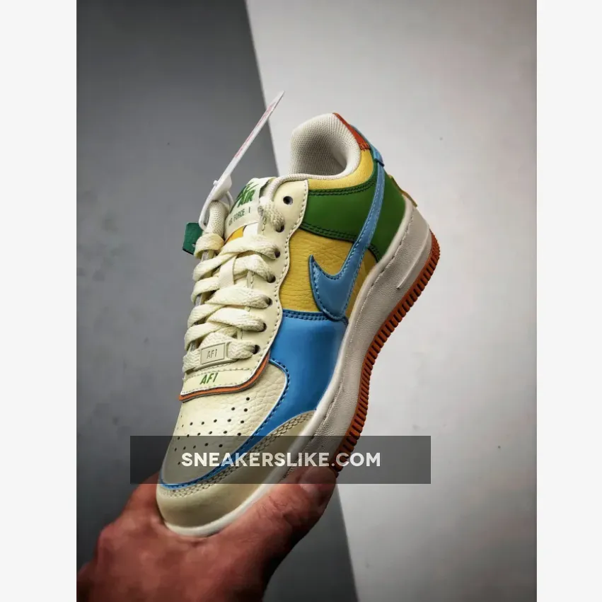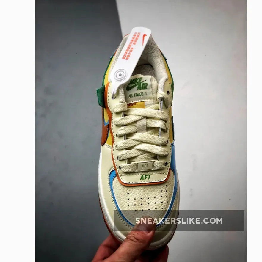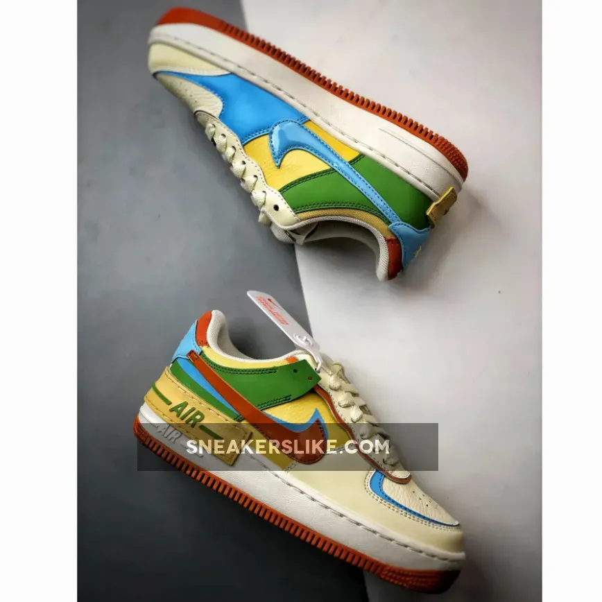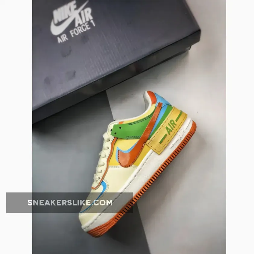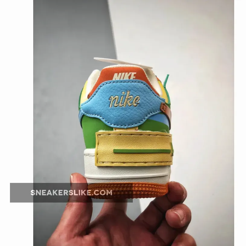 The orange, yellow, blue, and green hues add a playful twist to the otherwise off-white sneaker, and are a stark contrast to the subdued Nike Air Force 1 Shadow Sail/Mauve we saw recently.