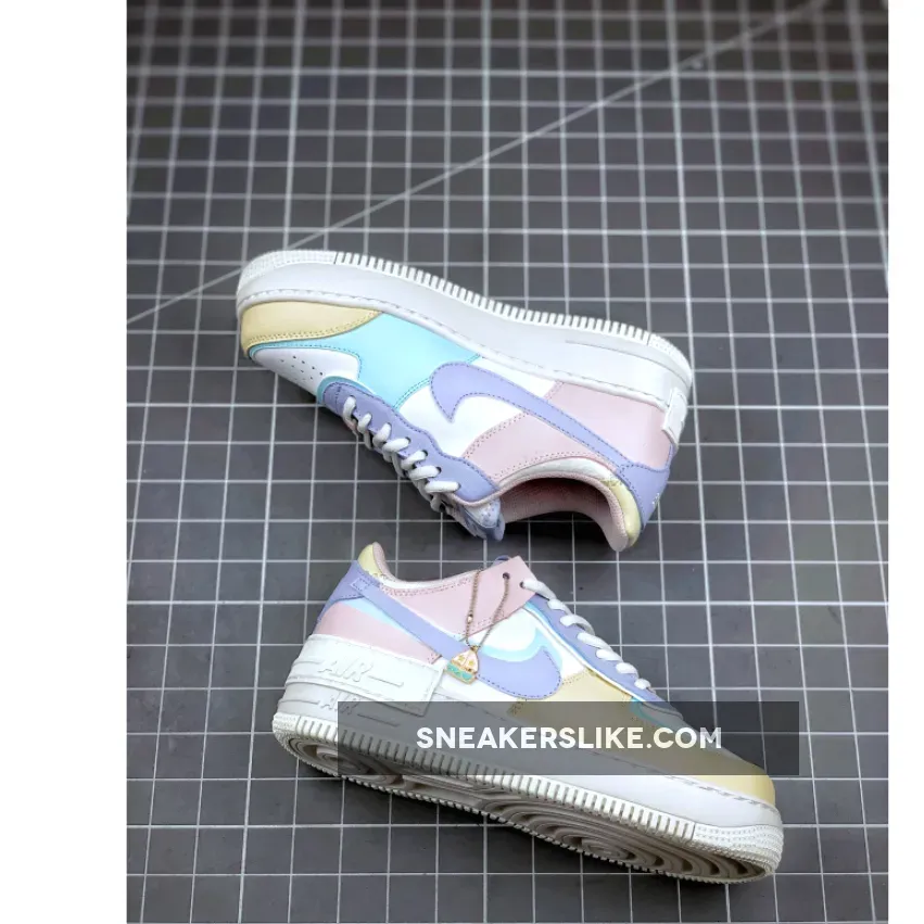 “I’m thoroughly impressed with my Nike Air Force 1 Shadow Pastel Blue Purple purchase! The quality is top-notch – the pastel purple and light blue hues are stunning, and the soft pink heel panel adds a touch of elegance. The tumbled leather upper feels luxurious, and the chunky midsole provides great support. Highly recommend!”