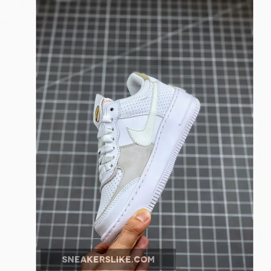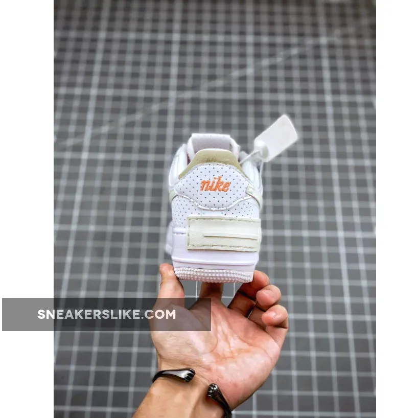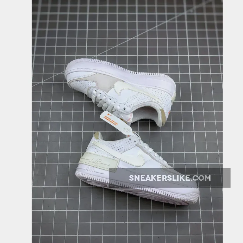 This white and cream Air Force 1 Shadow brings a more minimal aesthetic to the popular Swoosh silhouette, with new fabrics that haven’t been seen on this sneaker before. The upper looks to be crafted from a mixture of smooth leather and soft suede. Perforation holes scattered across the leather on the toe box, heel and collar allow for optimal airflow whilst adding a unique edge to this white cream AF1 Shadow.