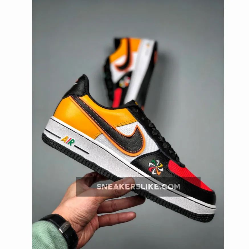 The circular nature of the design allowed for club names to be arched over it — a regular conceit in collegiate and sportswear graphics of the era. The Sunburst Pack places this logo on the Nike Air Force 1, Air Max 97, Air Max Plus and React Element 55.