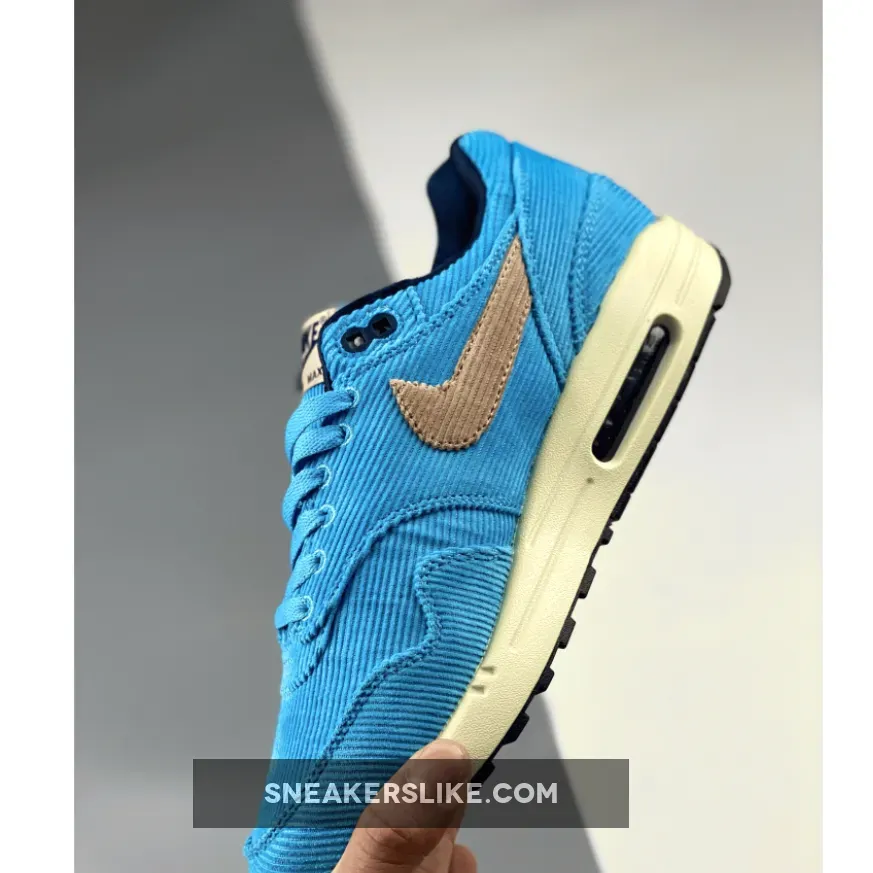 The Nike Air Max 1 Corduroy Baltic Blue is a retro-inspired sneaker and a colorway addition to the Air Max 1 collection.