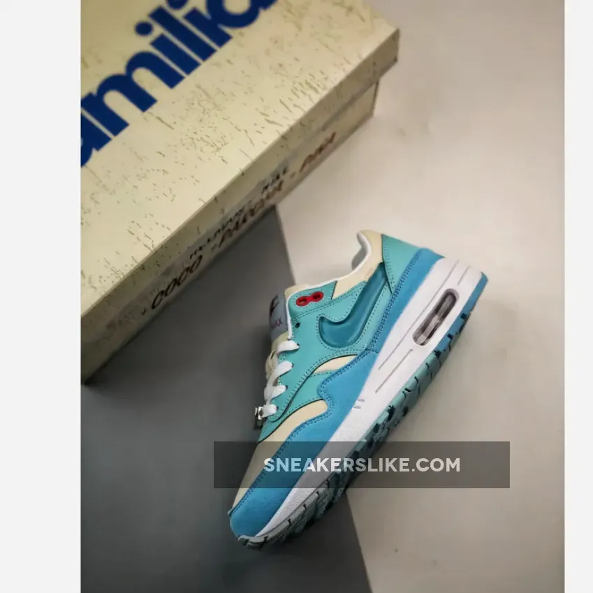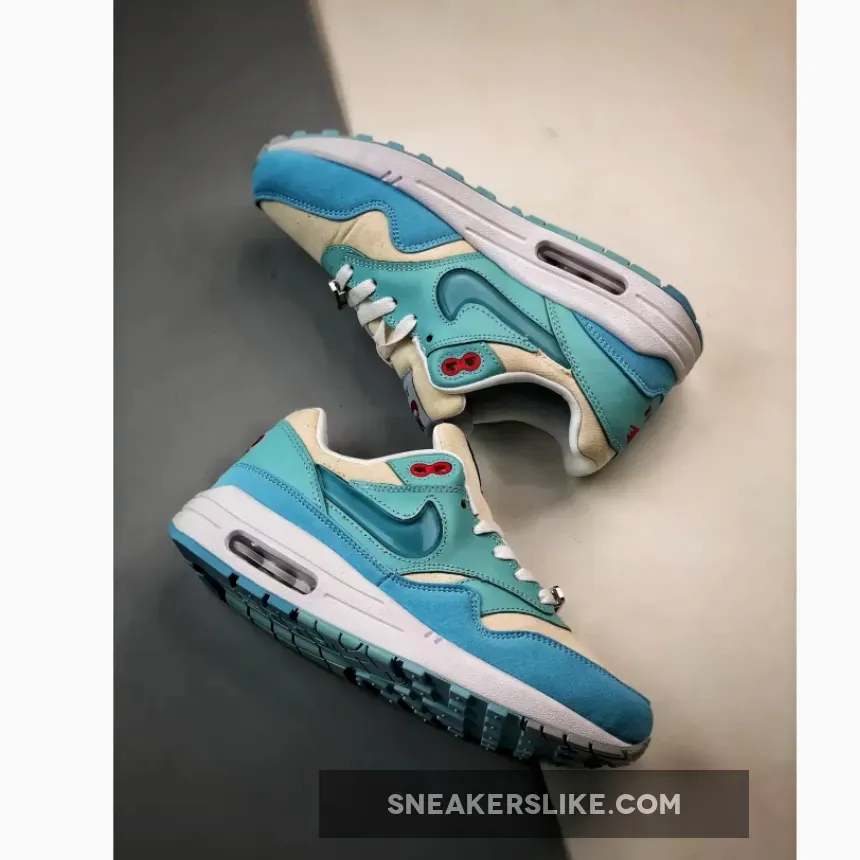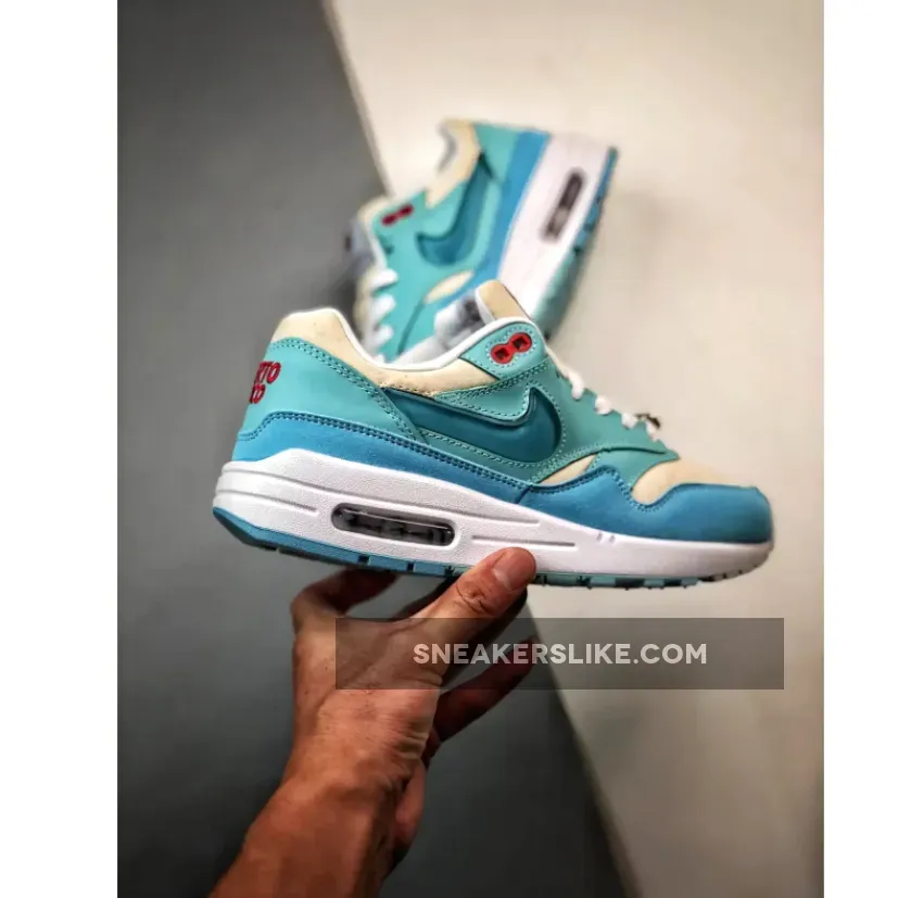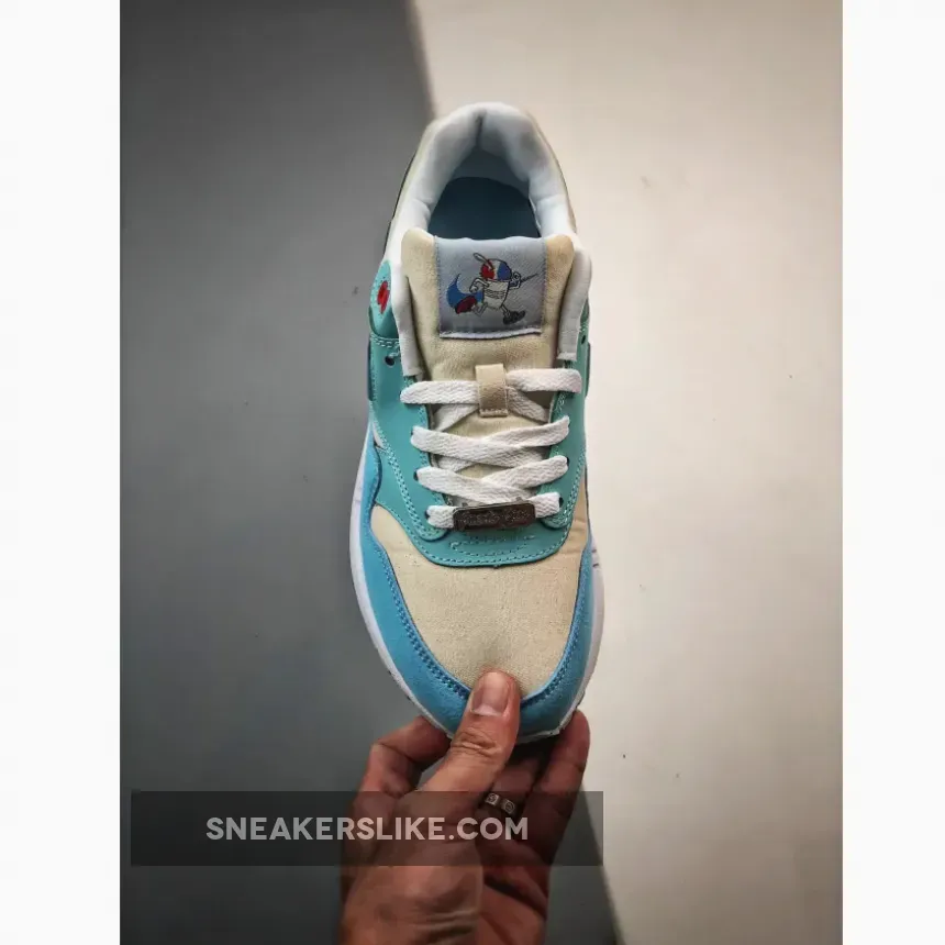 Solid color combo on this Air Max 1 Puerto Rico Blue Gale. Design nods to frozen treats with thematic graphics. Responsive cushioning, but runs a tad large. Customer service was ? on point with fast shipping and updates. Recommend!