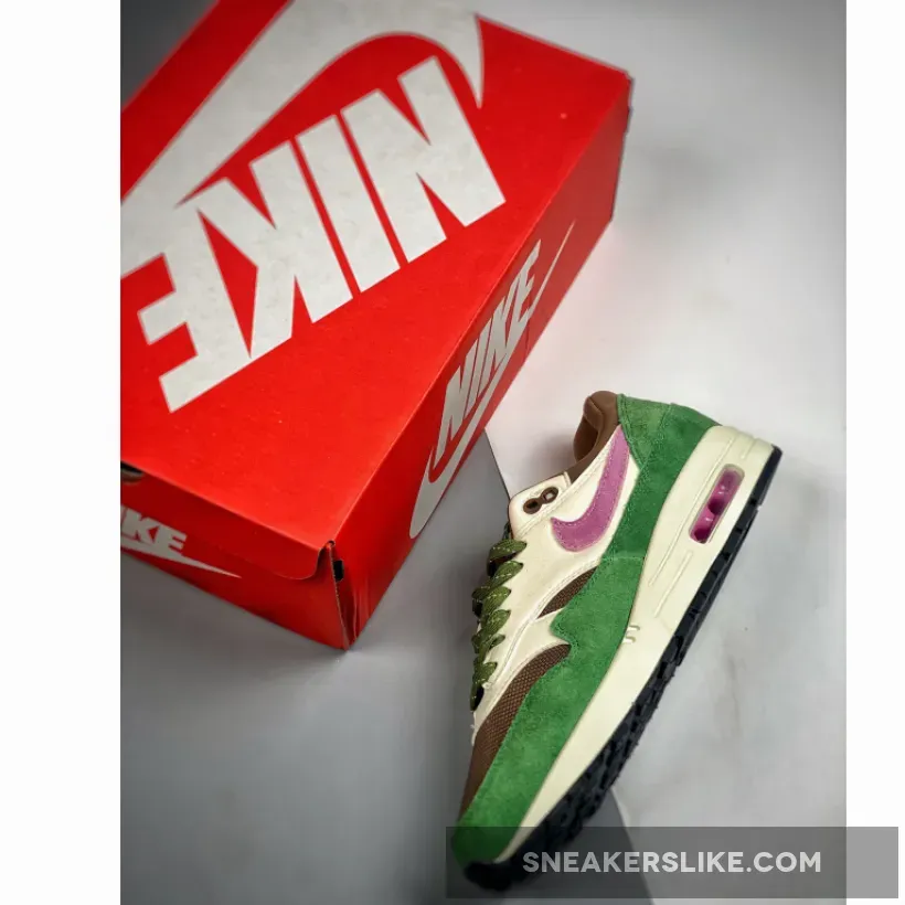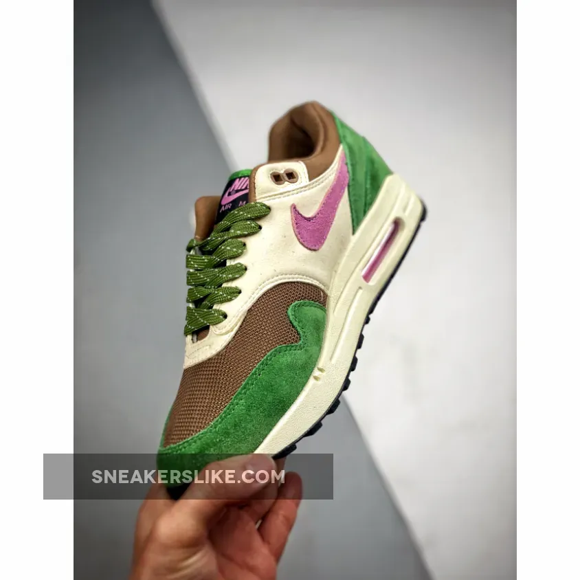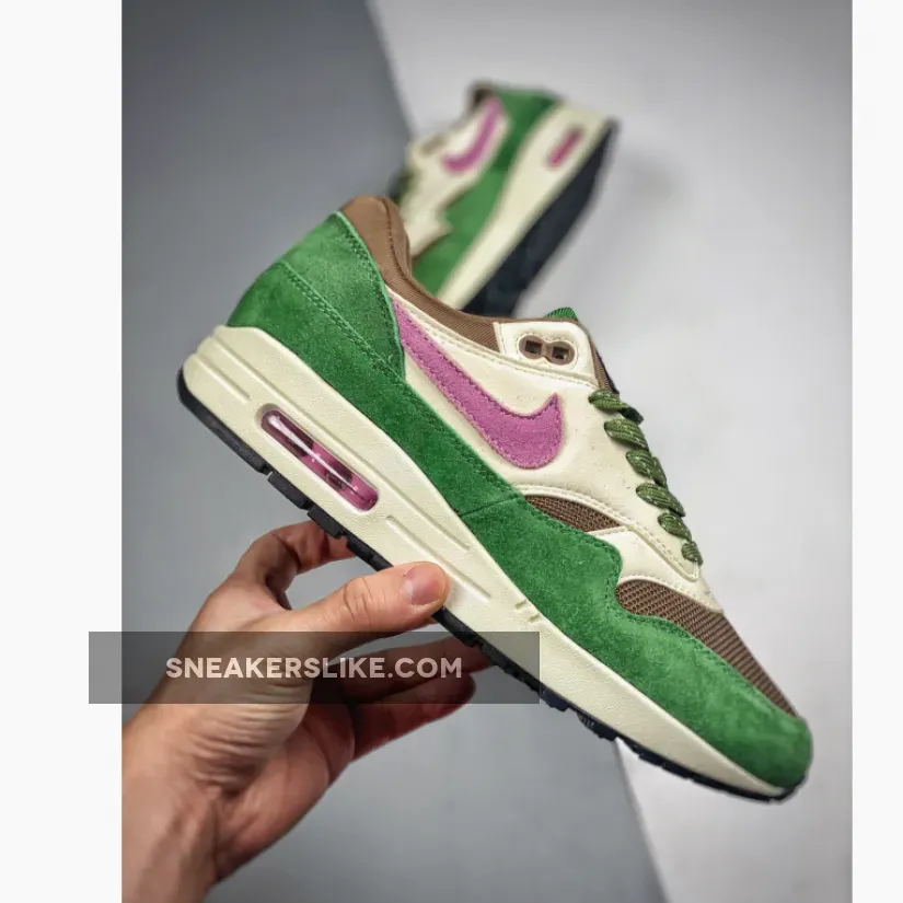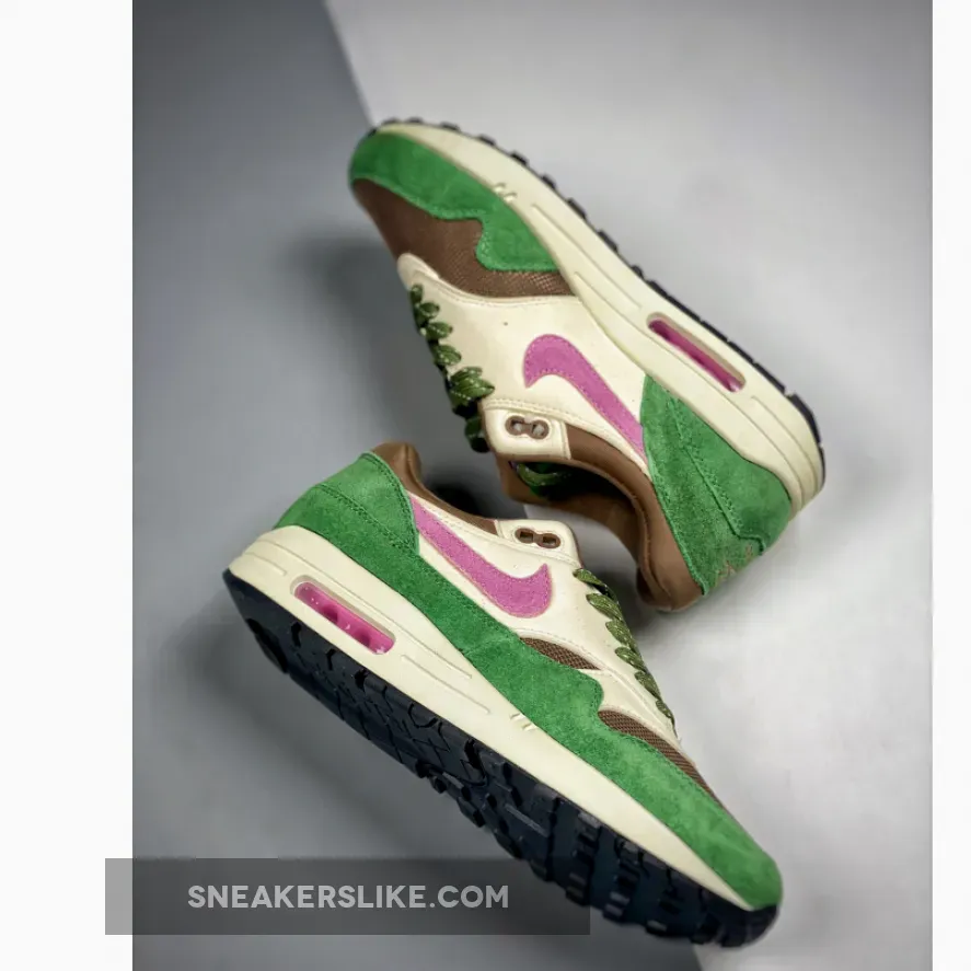 Get your feet ready for spring with Nike Air Max 1 Treeline’s nature-inspired colourway. A sheeny copper-coloured mesh base kicks things off, while the matching plush tongue and collar continue the luxurious feel of the pair. Furthering the elegance of these Air Max 1 sneakers is an understated smooth beige leather overlay at the side panel. Meanwhile, a green suede mudguard and heel complete the lush palette of this Air Max 1.