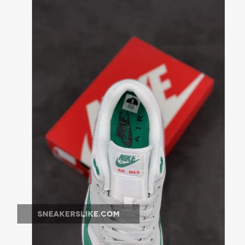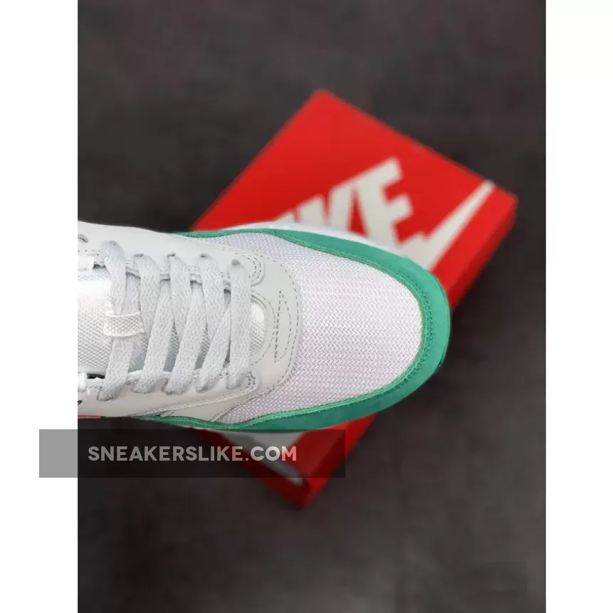 This bright Nike colorway debuted in March of 2018, updating the classic silhouette with vibrant colors and premium materials. The Air Max 1 ‘Watermelon’ features a grey body constructed with supportive mesh and leather. A green suede mudguard runs around the foot and matches the sneaker’s rubber outsole. This fruit-inspired colorway pops with a pink Swoosh and other bright accents across the shoe.