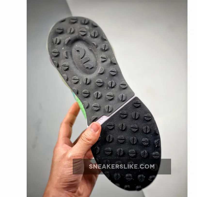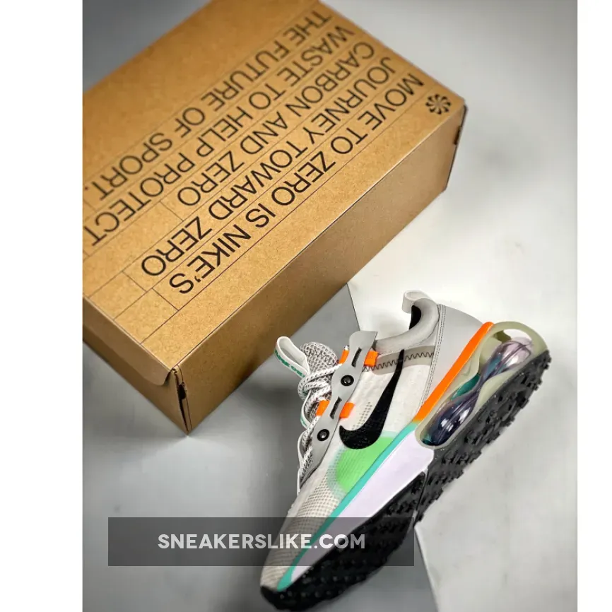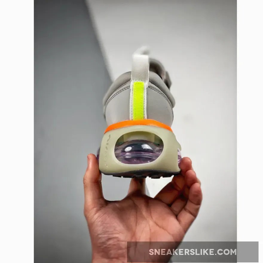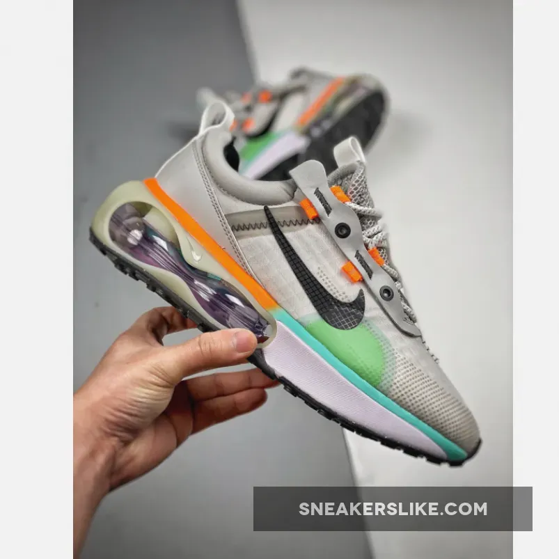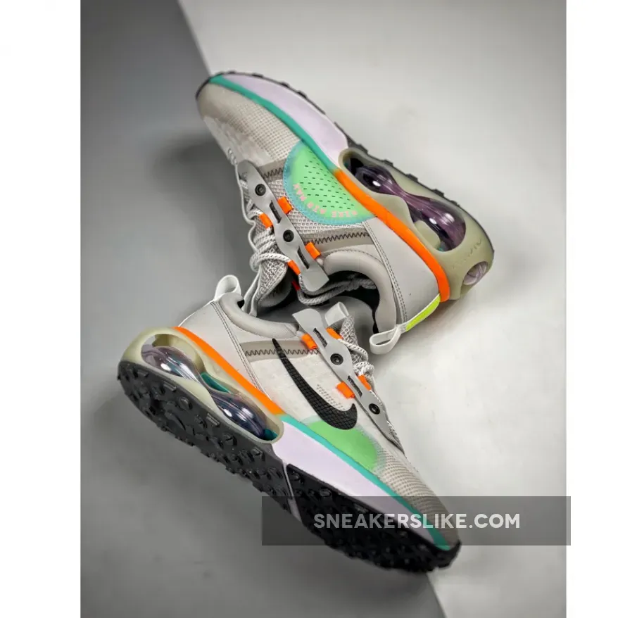So as not to be exhausting, a light grey builds out the foundation, dressing both the synthetic and leather elements. Black, then, takes the shape of the Swoosh at the side, while also wrapping the eyelets and lining. Among the brighter additions, the orange is the first to jump out from the palette, shining underneath the eye stays as well as across the back foxing. Forward, the latter fixture transitions to a light blue, whose shade can also be found along the edge of the forefoot’s green-tinted circular taping. What’s more, the Air Unit is tinted as well, opting for a dark purple.