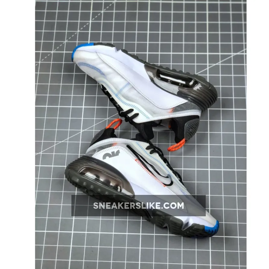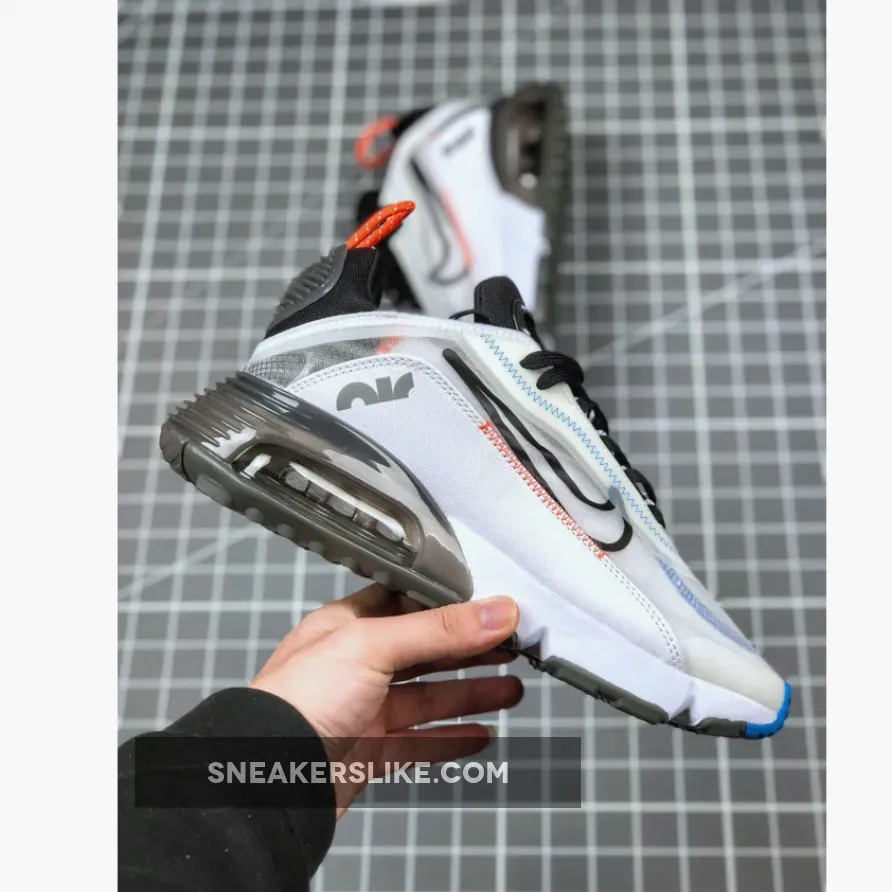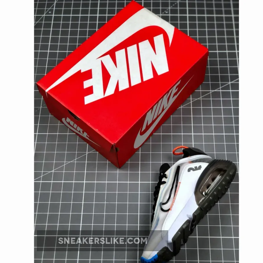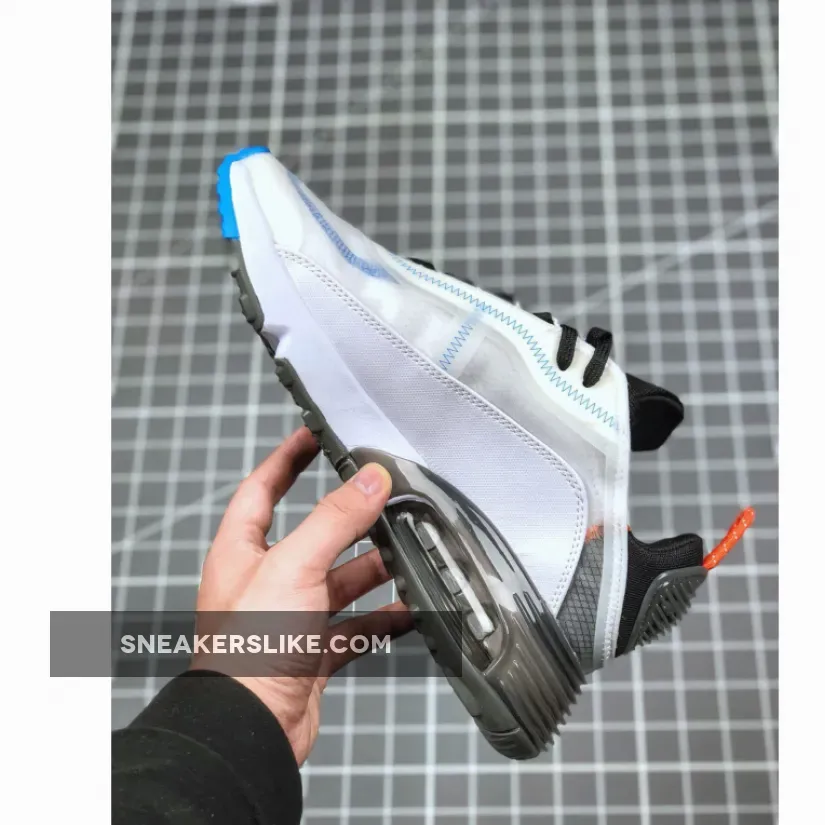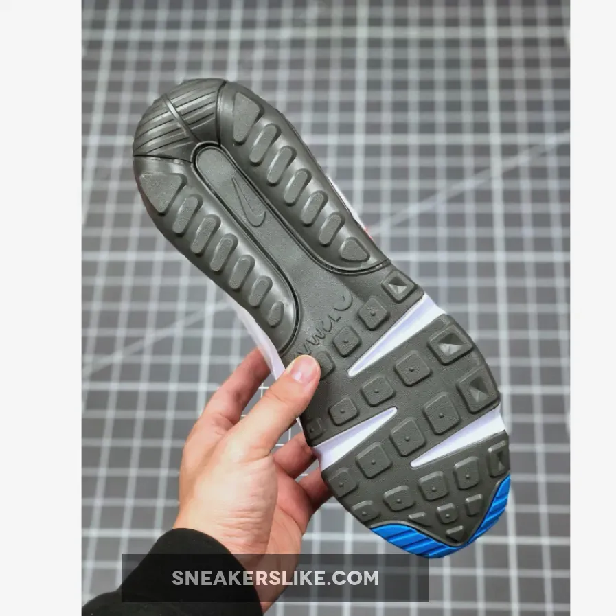 there are quite a few energetic standouts that make minimal though also impactful use of powerful neon tones. This latest, which may just be the inaugural release of the entire range, undoubtedly capitalizes on its unique traits: a set of constructions that — while still a direct reference to the coveted Air Max 90 — is dialed forward by exactly a decade. In terms of palette, white lies at the helm with almost every one of the leather mudguards, technical bases, and tooling elements dress to the colorless neutral; it’s the accents that infuse futuristic color with metropolis level lighting taking the take-down form of vibrant blue and red stitch or similarly colored tread pieces and heel pulls.