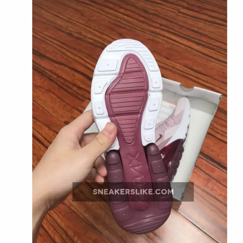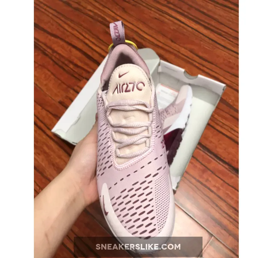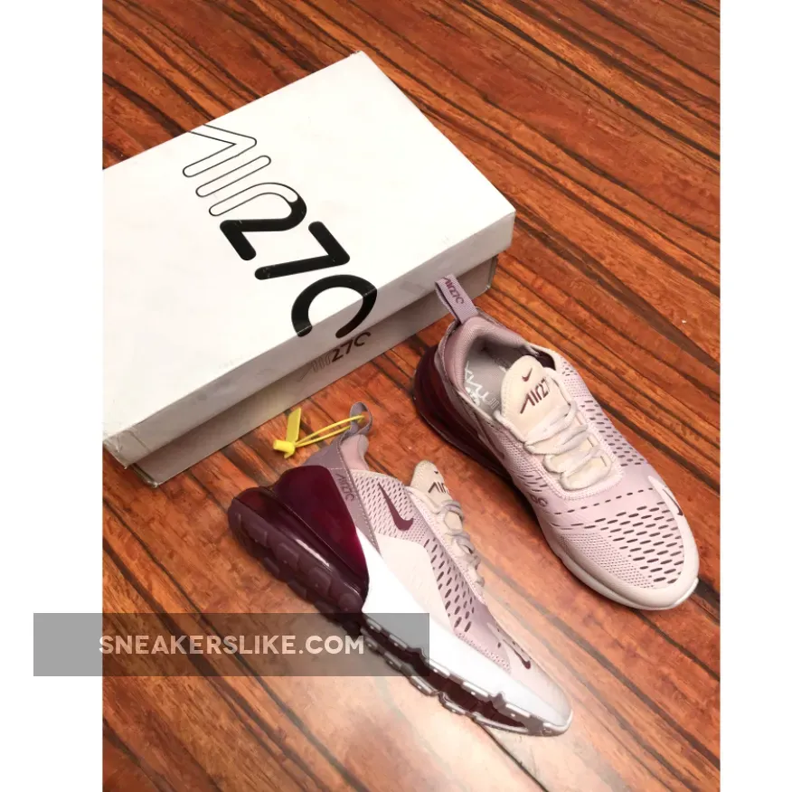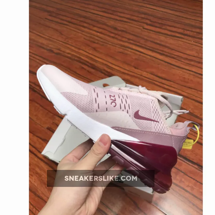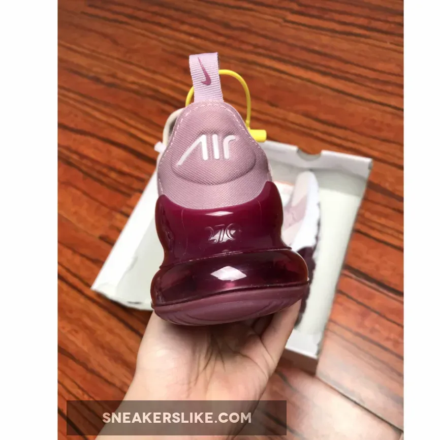 Dressed in a Barely Rose, Vintage Wine, Elemental Rose and White color scheme. This Nike Air Max 270 features a Light Pink upper with Rose Gold branding on the togbune, Nike Swoosh logos and heel Tab.