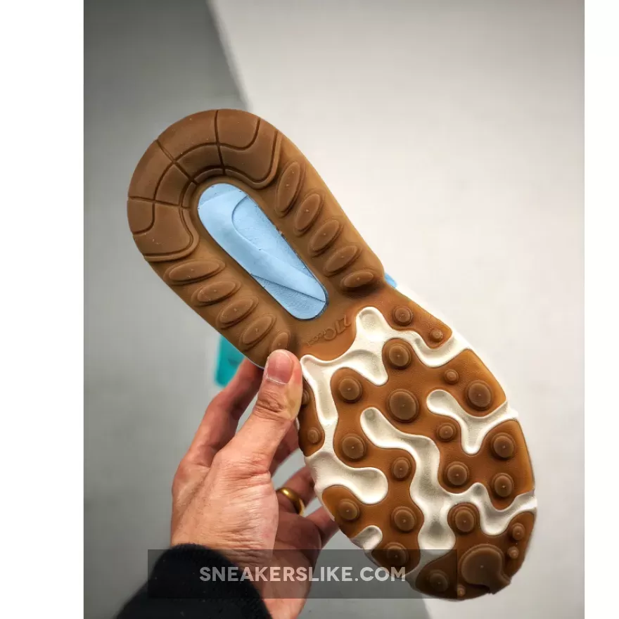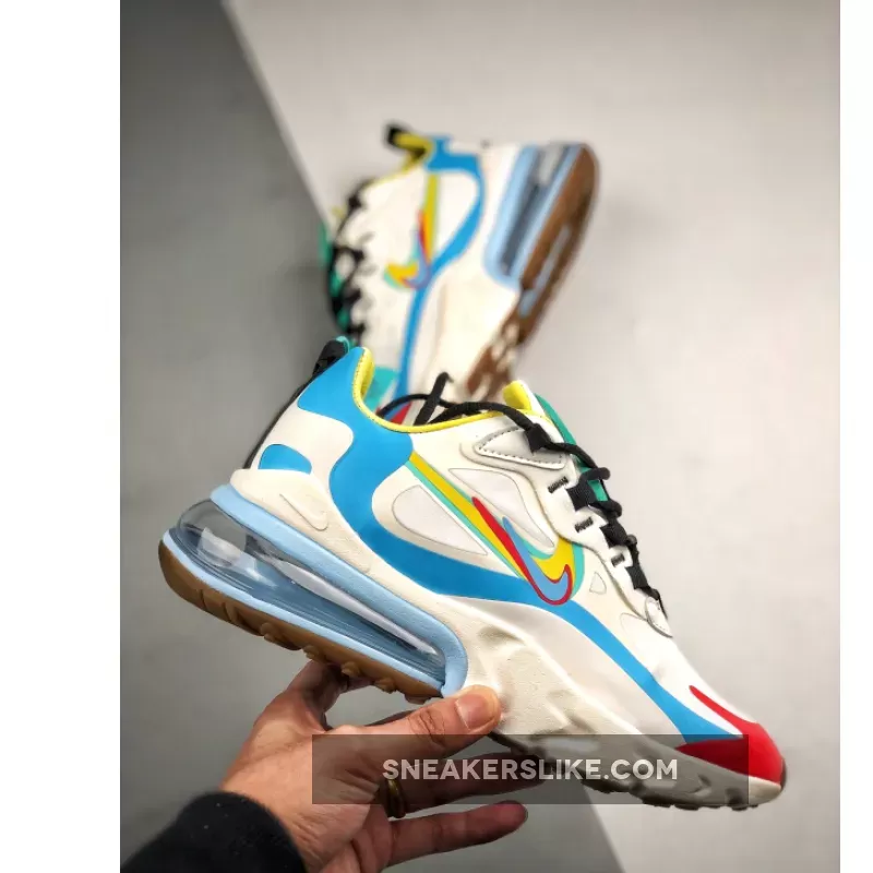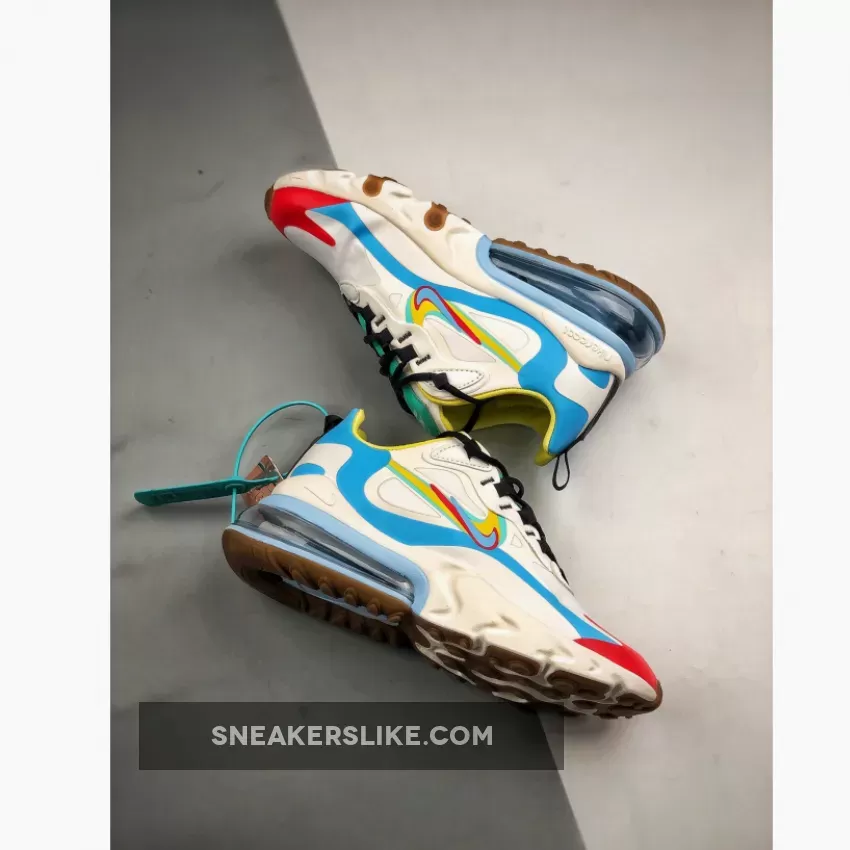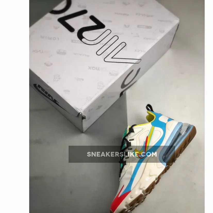 “I’m thoroughly impressed with my Nike Air Max 270 React ‘Brand Heritage’! 🤩 The cream-colored upper is so soft and comfortable, and I love the pop of color from the Blue and Red overlays 💛🔥. The React midsole provides great cushioning, and the gum rubber outsole gives me confidence on various terrain 👣. Overall, a solid 9/10 for this affordable yet high-quality shoe! 👍”