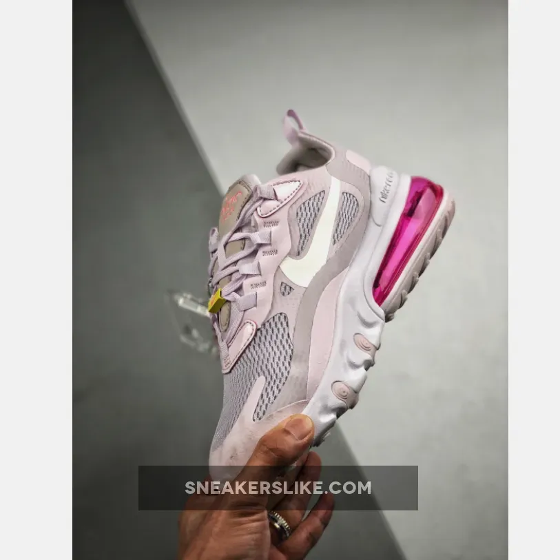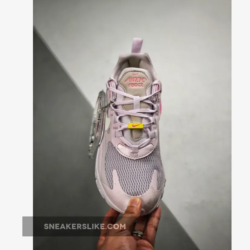 . The Swoosh hybrid will be keeping you comfier than ever with its sock-like upper, React Technology under the forefoot and Max Air unit under the heel. Added details come in yellow at the base of the lace unit, in a similar style to the AF-1 silhouettes, alongside further Digital Pink branding on the tongue and vertically down the heel of the lilac Air Max 270 React.