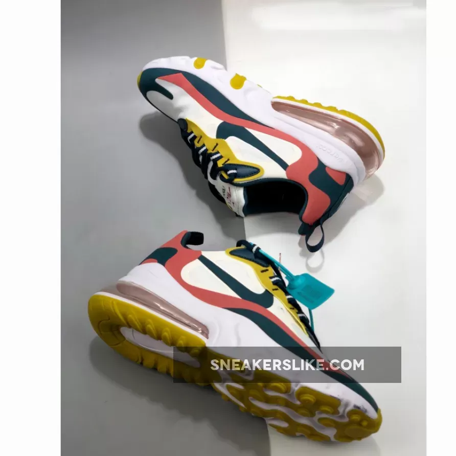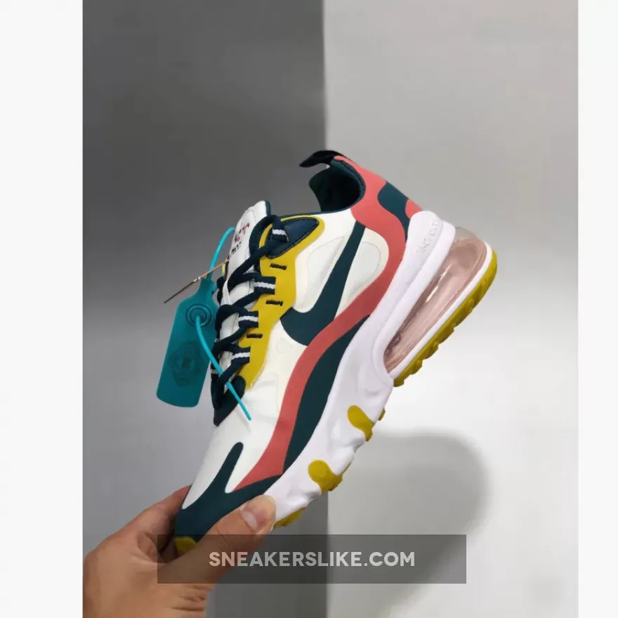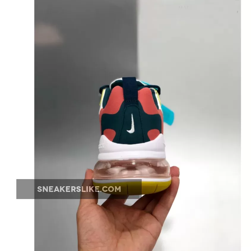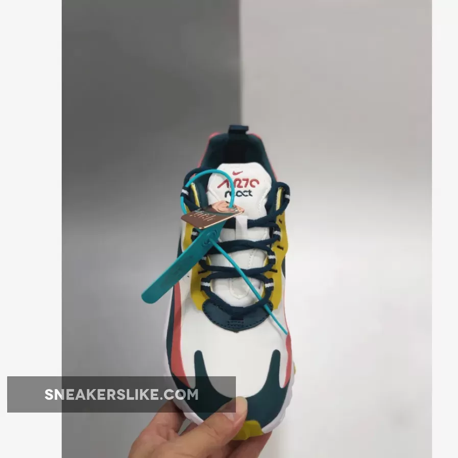 The Nike Air Max 270 React Midnight Turquoise is the latest colorway of the legendary AM270 React to launch to the masses. Combining two of the Swoosh’s best-selling technologies, the model has become a cult-classic in it’s own right and is always a hit with sneakerheads.Dressed in a green, pink, white and yellow colour-scheme, this pair is crafted from a blend of suede, synthetics and leather for a panelled and well-designed upper. Nike’s iconic Swoosh logo adorns each side, while additional branding is present at the tongue and heel. The futuristic lacing system is low-key and stylish, while a pull-tab makes an appearance for ease of use. Underfoot, React technology and Air Max technology combine to form one, and impressive effort from the Oregon-based brand. If you’re looking for an everyday pair of comfortable kicks, there’s not many better options around than the AM270 React.