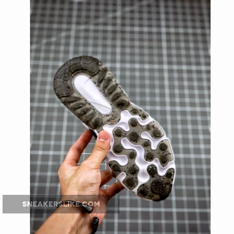 This offering comes dressed in a Black, White, Iron Grey, and University Red color scheme. It features a White base with Grey and Black overlays detailed with Red contrasting accents throughout.