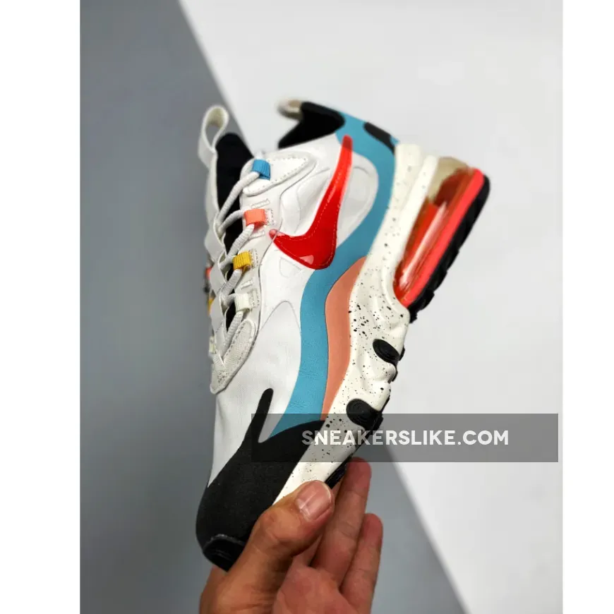 Inspired by the sky lantern, this offering of the Nike Air Max 270 React comes dressed in a White, Infrared, and Summit White color blocking. The shoe features a White upper with multi-color lace loops, Infrared Swooshes, Blue and Pink overlays atop a gradient Air Max heel unit. “The Future is in the Air” branding on the left tongue pull tab with the collection’s signature hangtag completes the design.