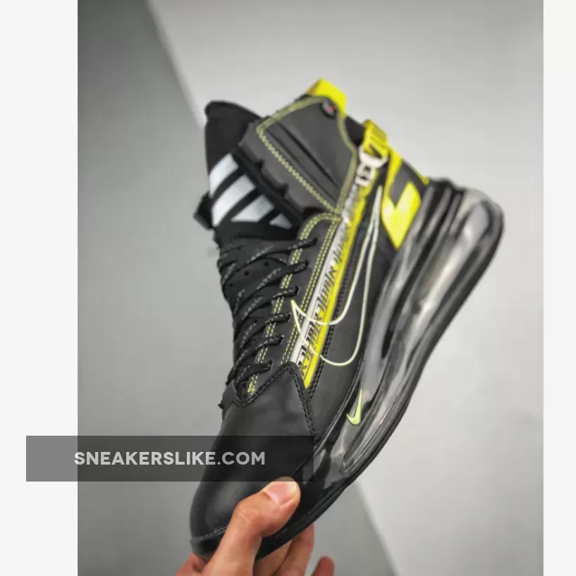 Dressed in a Black, Dynamic Yellow, and University Red. This Nike Air Max 720 features a Black leather upper with Yellow accents and a zipper that extends across the side panel. Additional details includes “Racing” branded on the heels, while having “AIR 7720” branding repeated on its racing stripe atop a Air Max heel unit.