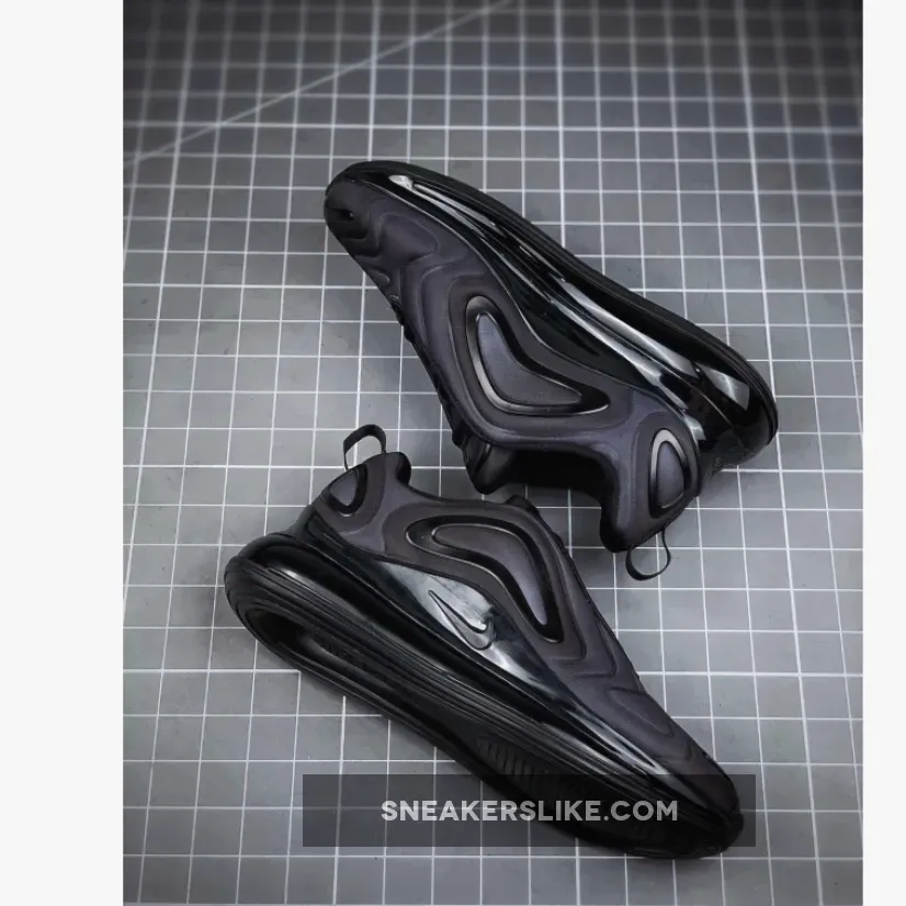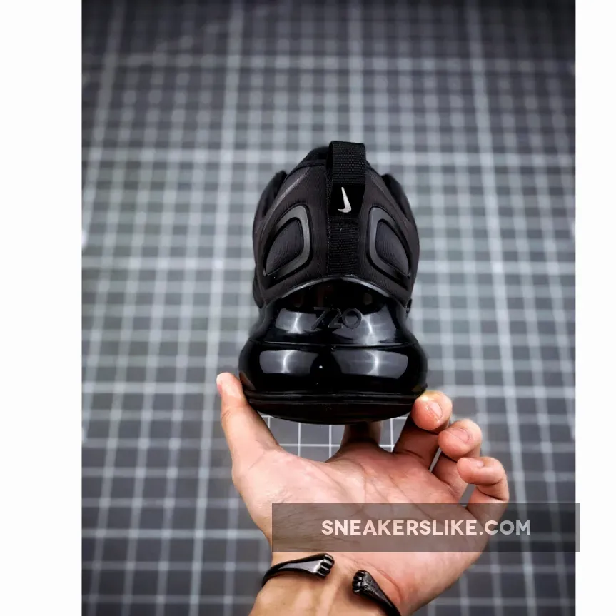 This iteration of the Nike Air Max 720 features an all-Black upper with matching Black plastic molded overlays. Finishing off the simple, yet sleek design is an all-Black 720 Max Air unit and outsole.