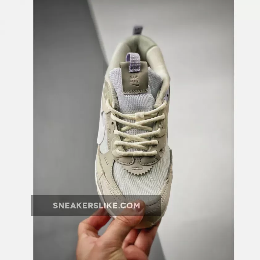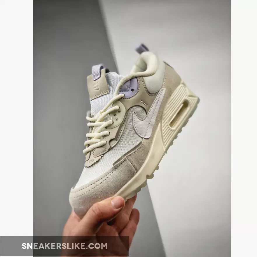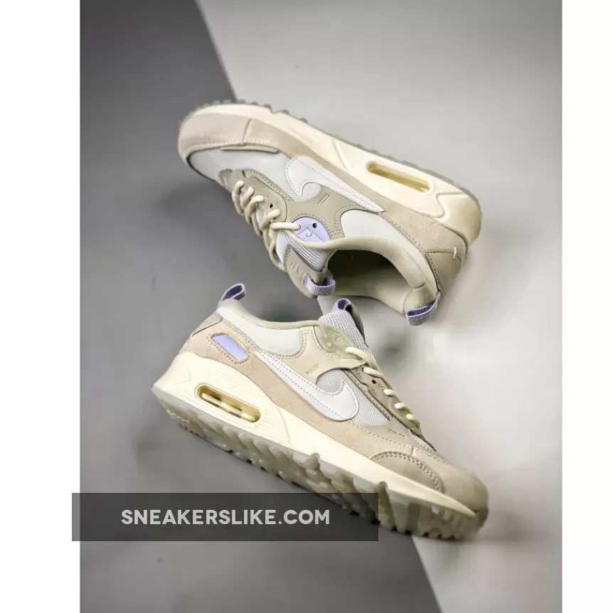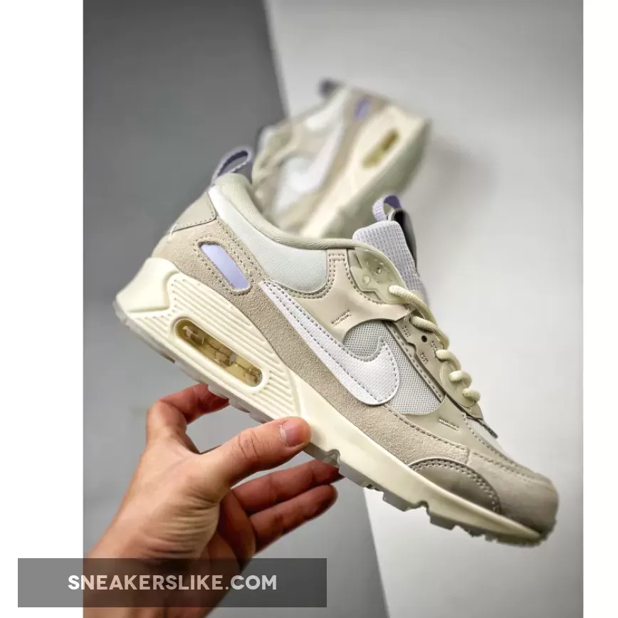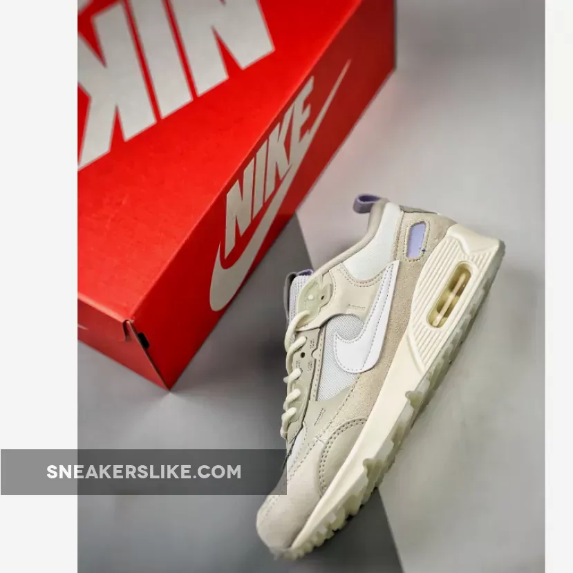 The 32-year-old Nike Air Max 90 has just dropped an angelic-looking iteration. Take a closer look at the Nike Air Max 90 Futura White Light Bone. This Air Max 90 Futura has a “Summit White/ Light Bone” colour scheme. The mesh base, the mesh tongue, the signature profile Swooshes on both sides of the shoe, and some of the synthetic overlays on the upper are in the immaculate hue of Summit White. The suede wraparound overlays on the lower half of the shoe, on the other hand, are in the shade of Light Bone.