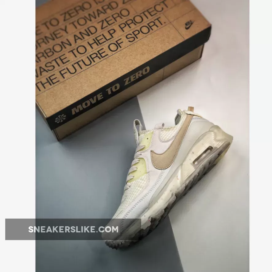 The latest to join Nike’s “Move to Zero” Terrascape collection is the Nike Air Max 90 Terrascape Light Bone. This Air Max 90 features a deconstructed design that’s reminiscent of Virgil Abloh’s Off-White x Nike Air Max 90.