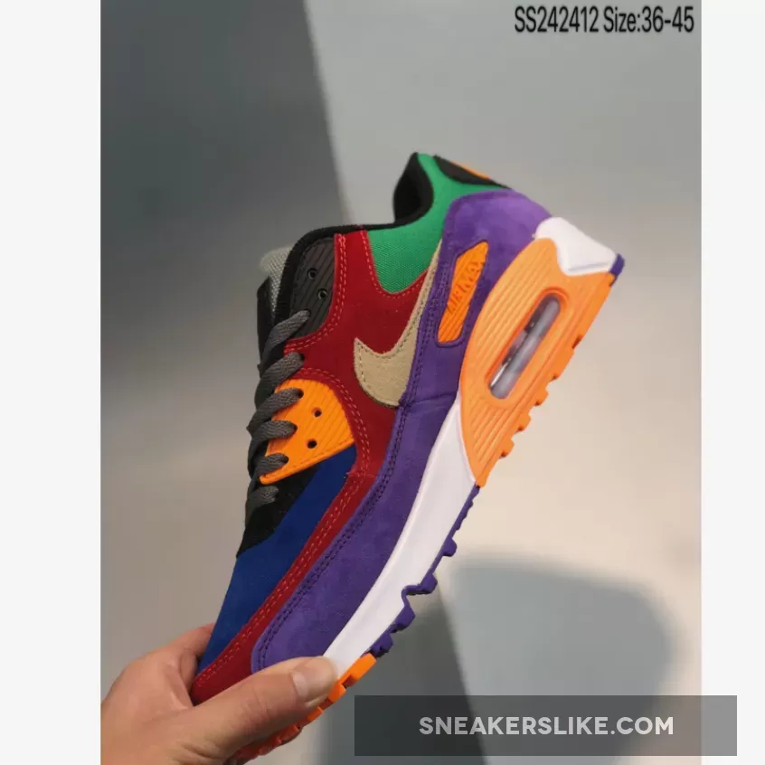 Dressed in a University Red, Pale Vanilla, and Hyper Grape color scheme. This Nike Air Max 90 features premium suede materials covered in the original color palette used on the iconic Dunk drop including the leather tongue labels.