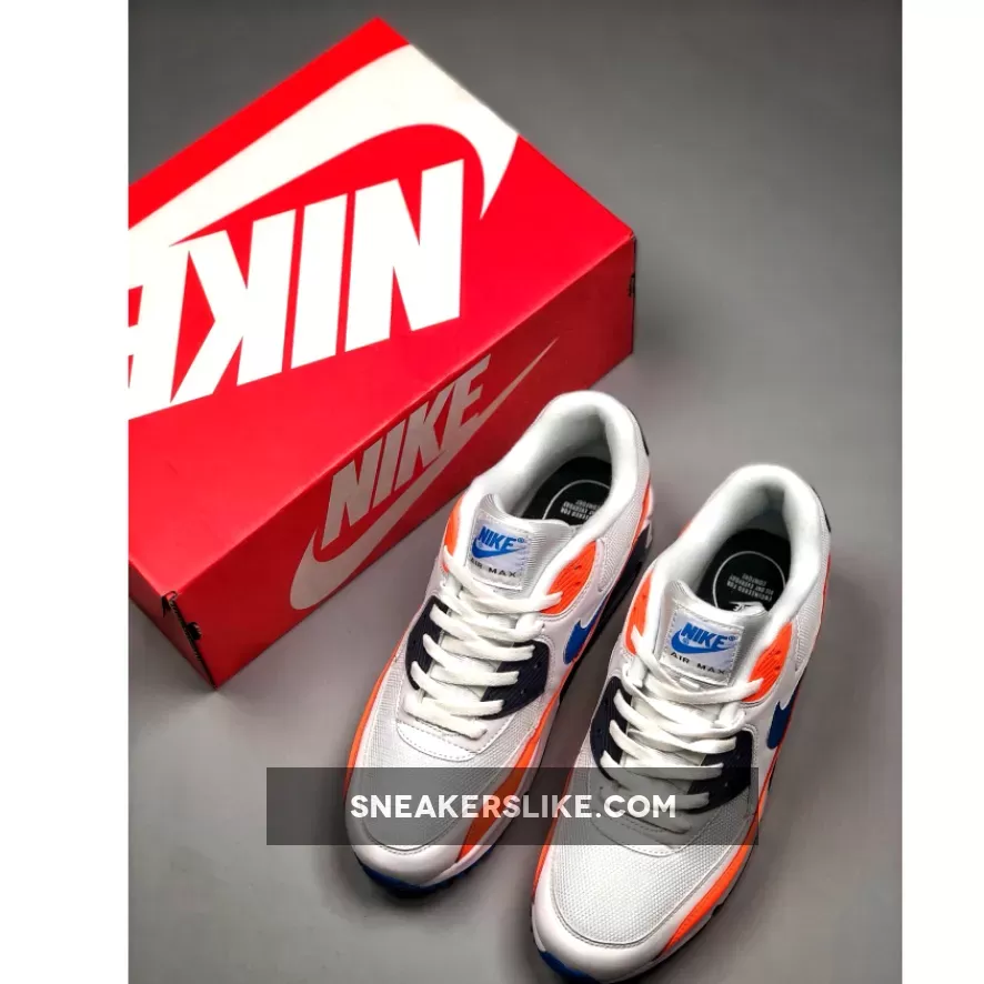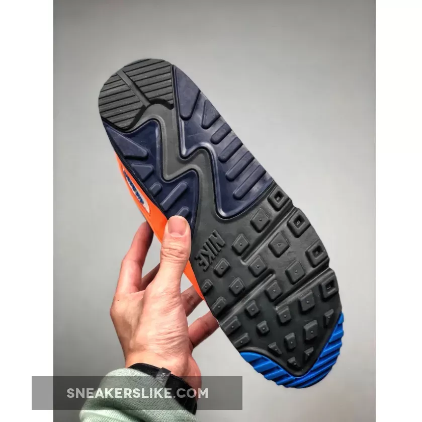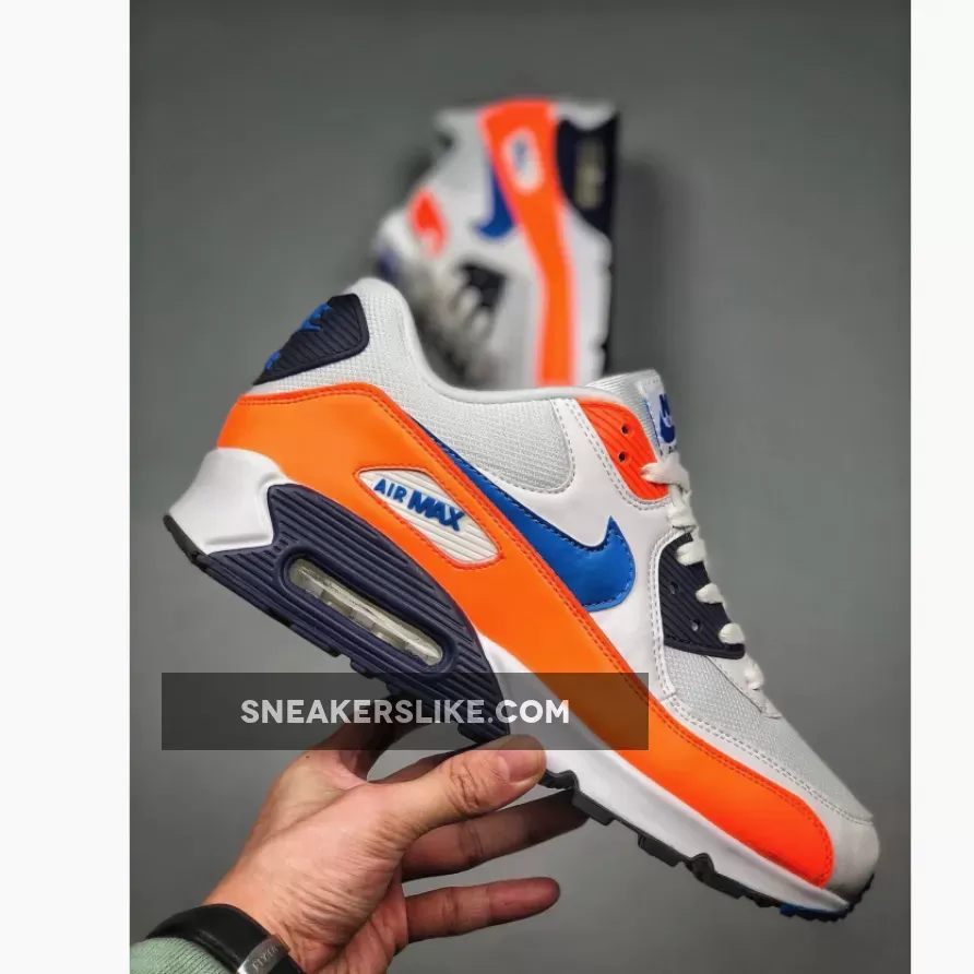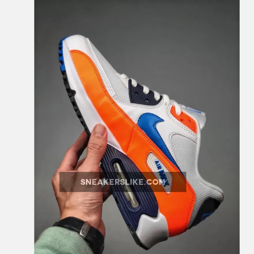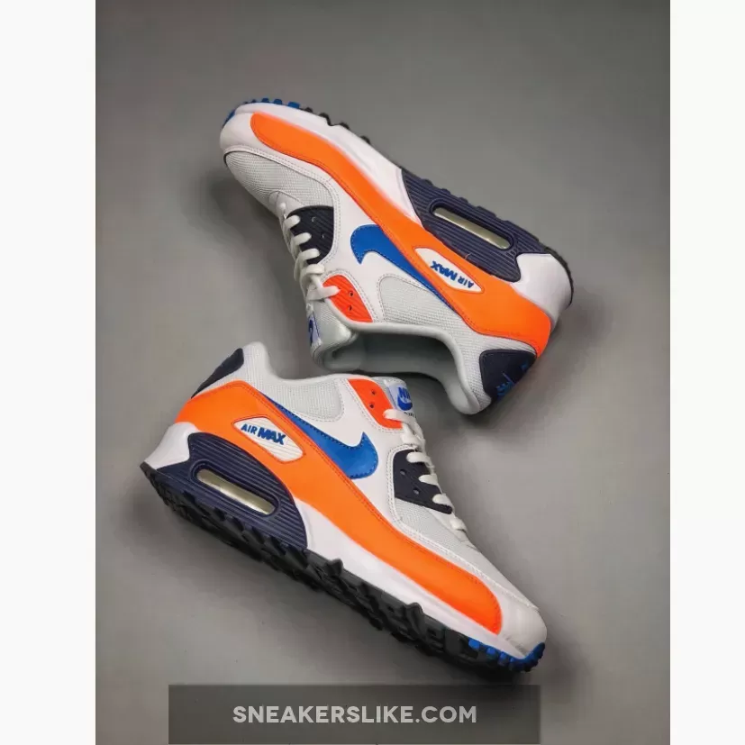 Using the traditional leather and mesh as the base, these 90s then apply bright blue and orange accents on the midfoot Swoosh, and tongue badge.