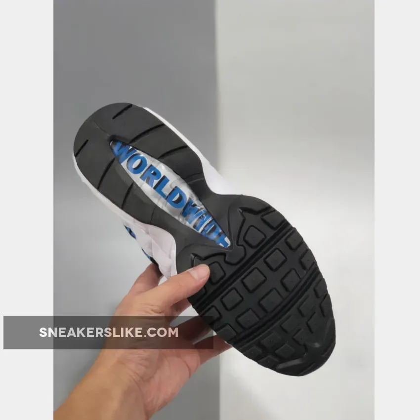 The Nike Air Max 95 Worldwide White Blue Fury is the latest in a series of Nike models that’s become known as the Worldwide pack. The iconic 1995 runner is pimped up with vibrant graphics and exaggerated features to create a one-of-a-kind look that will no doubt be snapped up by sneakerheads and fashion fans alike. Dressed in an eye-catching white, blue and green colorway, the pair are crafted from patent leather, synthetics and mesh and showcase a head-turning “NIKE WORLDWIDE” graphic across both sides. Swoosh logos are also present, alongside a brand-new Nike globe logo that’s present at the tongue. The pull tabs used here are elongated for a unique look, with these appearing instantly different to a classic AM95. If you’re looking for an innovative pair of trainers to mix up your collection then look no further.