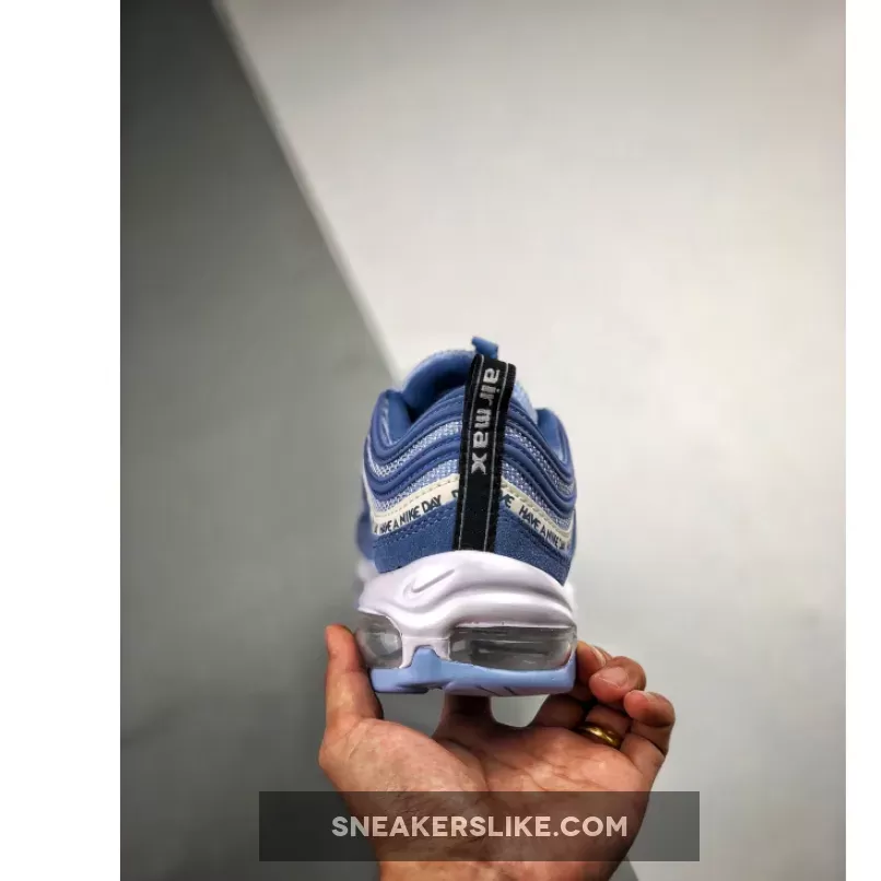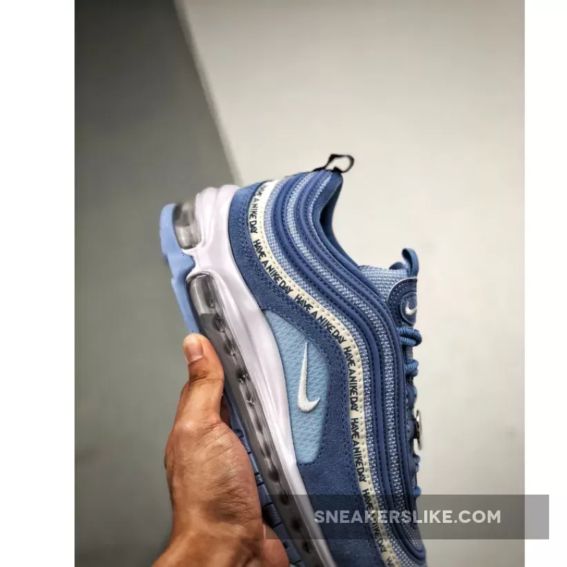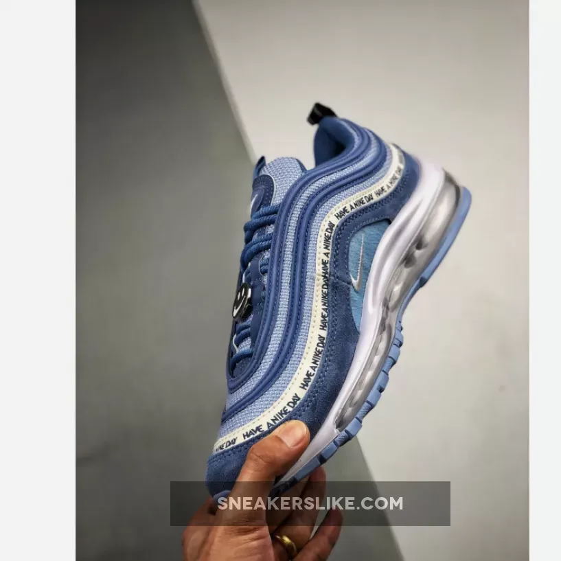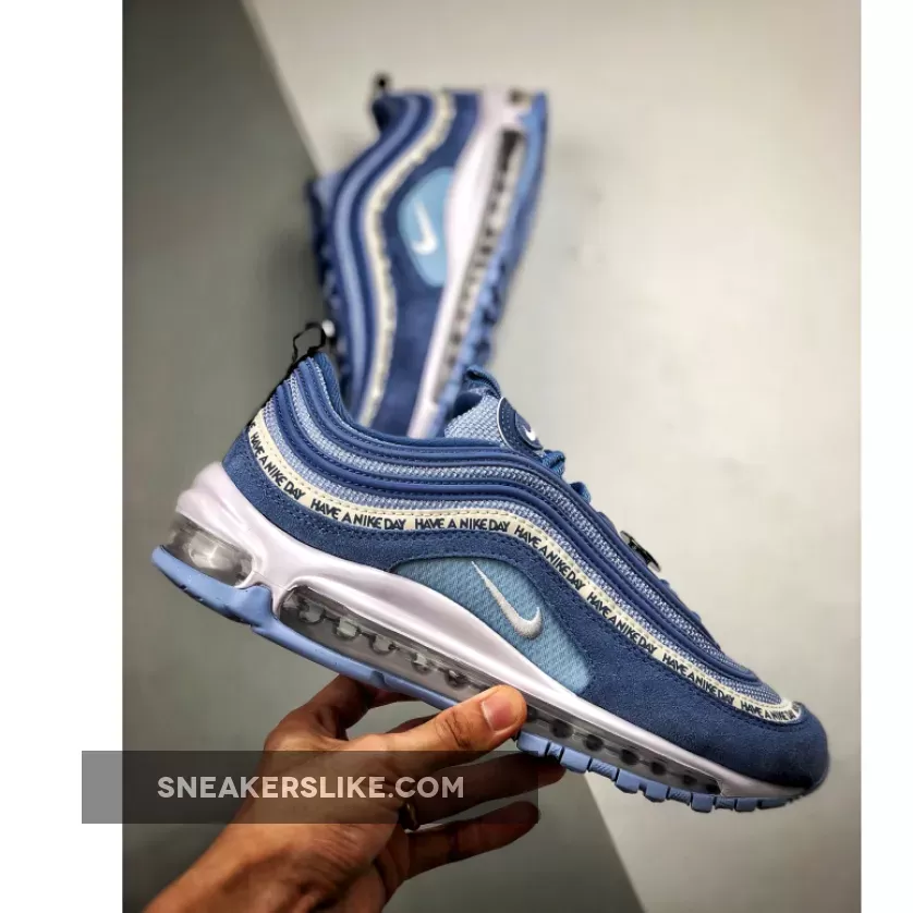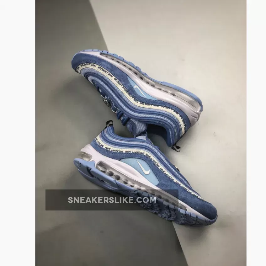 One of a few Nike Air Max 97 releases, this ‘Have A Nike Day’ release features shades of Blue throughout while the slogan is repeated on the racing stripe as well as the heel tab.