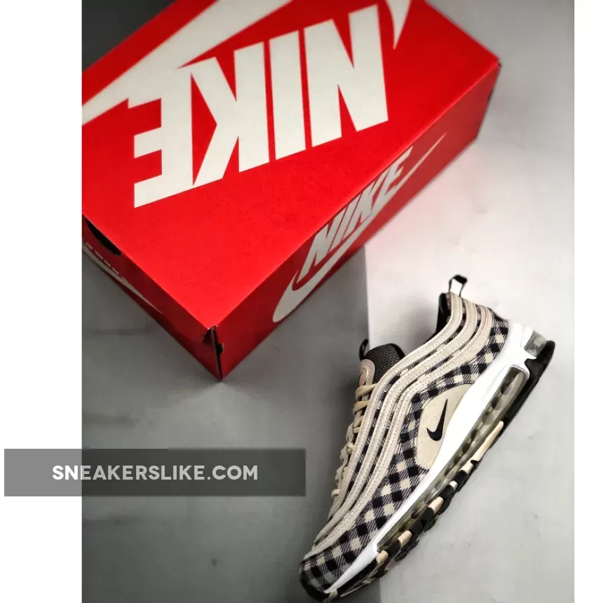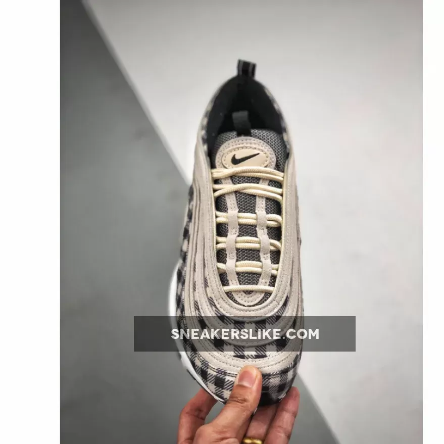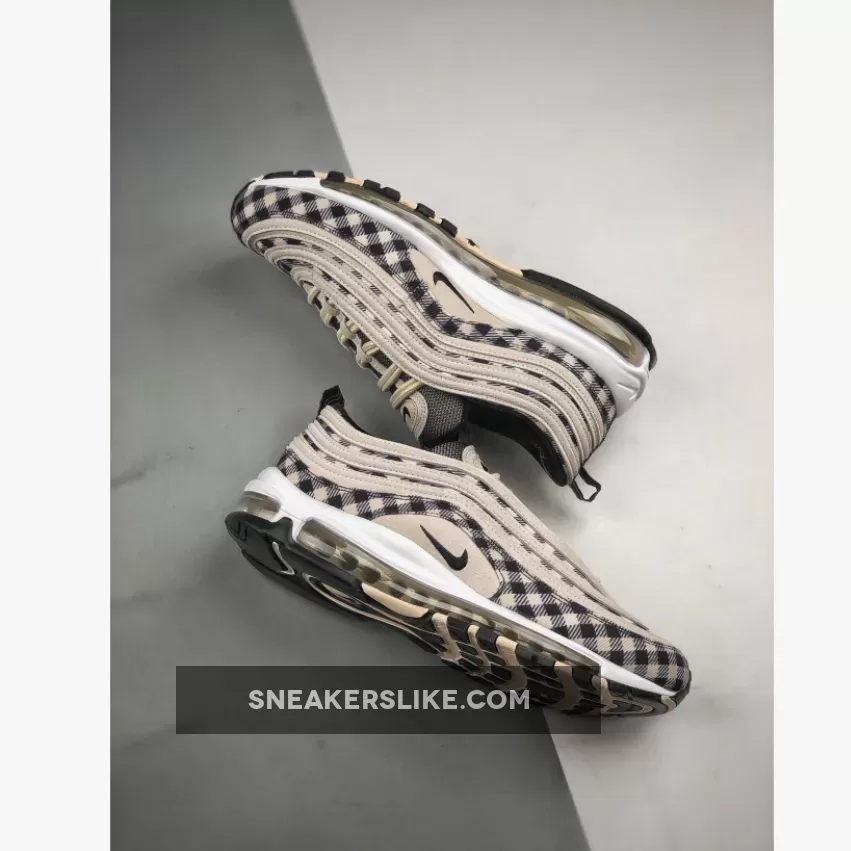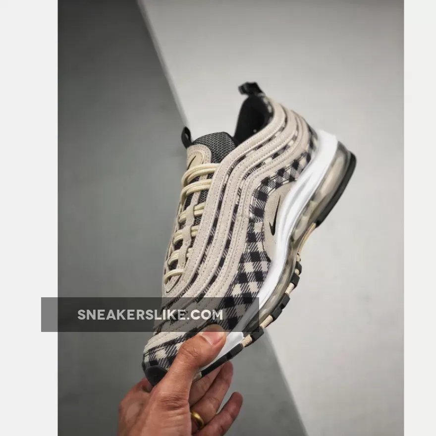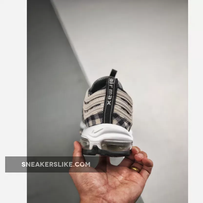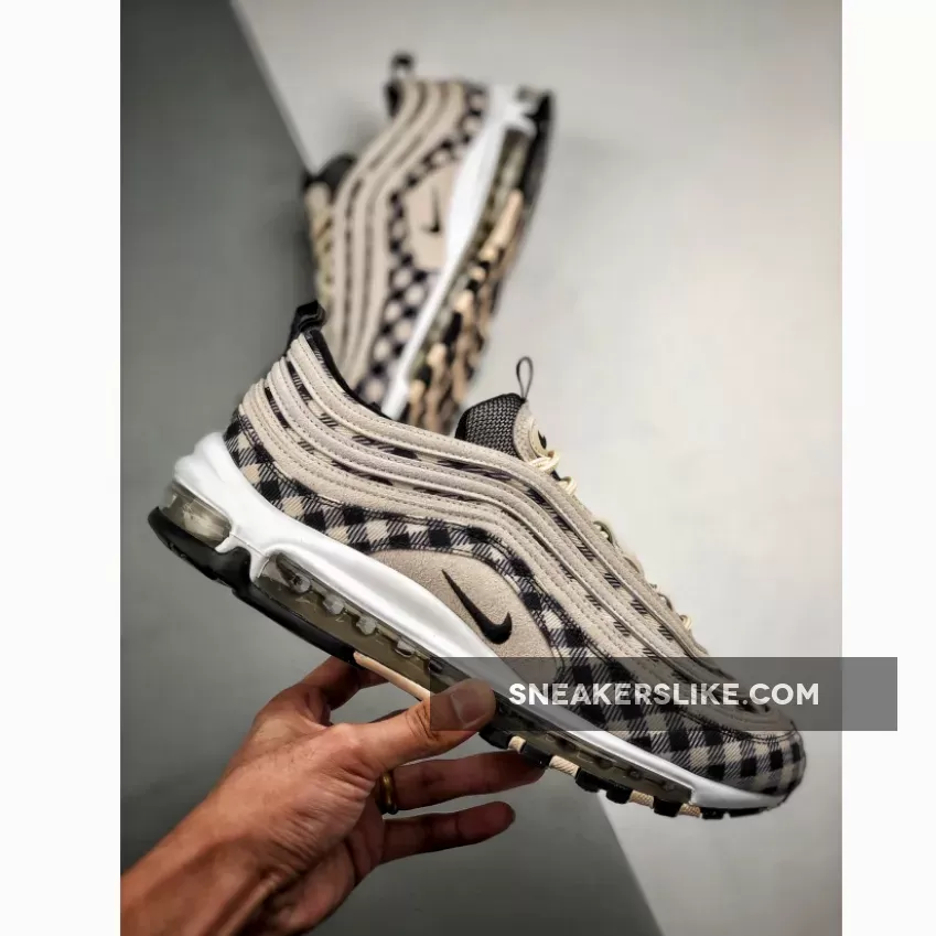 This time, the Nike Air Max 97 features a Tan suede on the striped overlays, while having a plaid pattern in Black and Tan on the underlays.