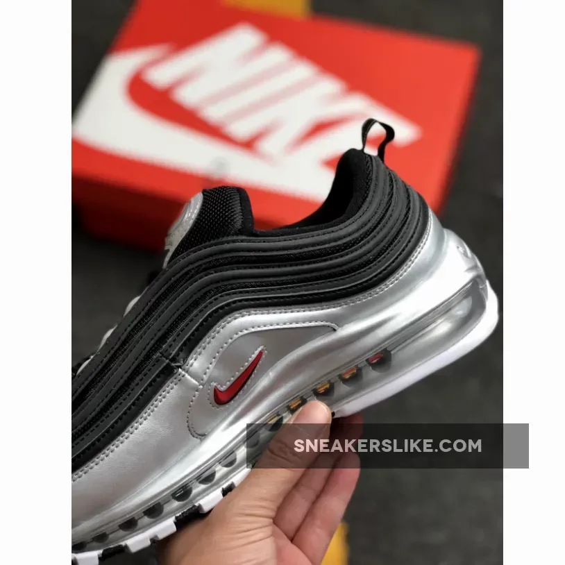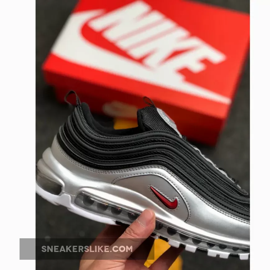 One comes dressed in Black/Metallic Silver and the other in a Black/Metallic Gold color scheme. Both are contrasted with Varsity Red accents on the Swoosh logo, heel tab and outsole, along with tonal branding on the tongues. Nike Air Max 97 QS Color: Black/Varsity Red-Metallic Silver-White Style Code: AT5458-001 Release Date: November 9, 2018 Price: $180