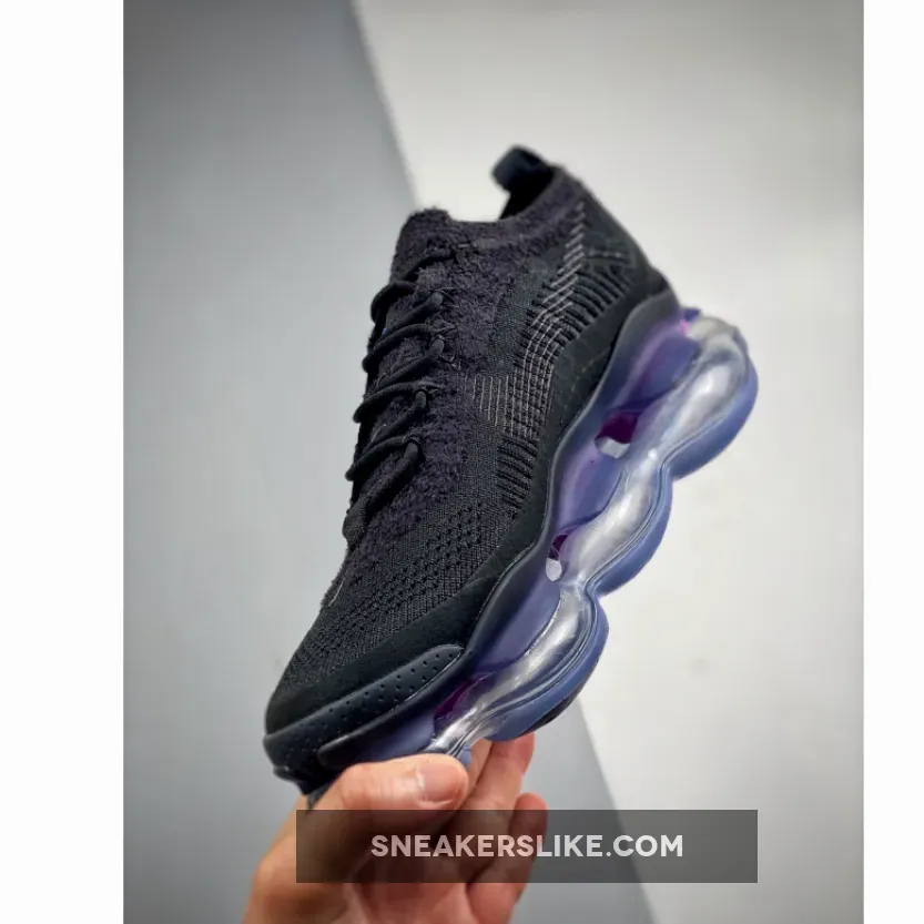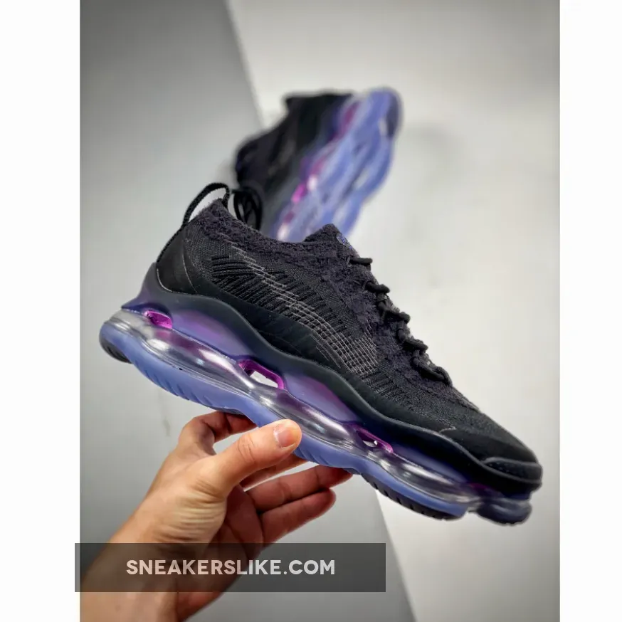 Ultra-comfortable and eye-catching, the Nike Air Max Scorpion Black is not a pair that will blend in the background. It stands out with its chunky two-toned purple and electric blue Air bubbles which produces an ethereal iridescent-like look. The flexible construction of the yarns will also provide a nice, snug fit. A lightweight tongue, convenient lacing system and subtle pull tab complete the unique design.