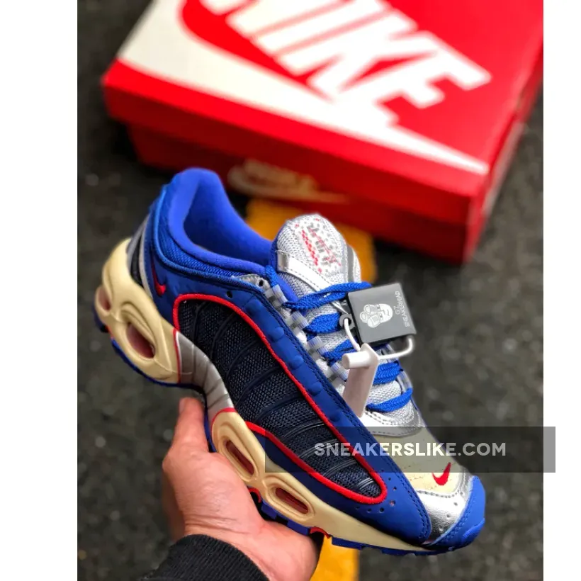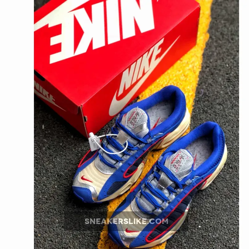Dressed in a Space Blue, University Red, and Metallic Silver color scheme. This Nike Air Max Tailwind IV is dominated with Blue covering majority of the upper, while having hits of Red and Silver throughout. The shoe is completed with a Cream-colored toe box and matching midsole.