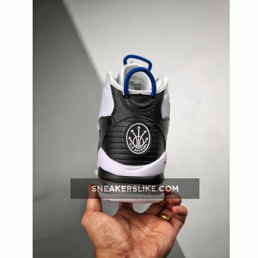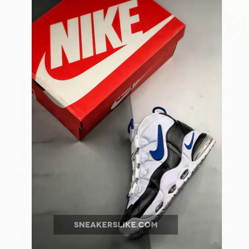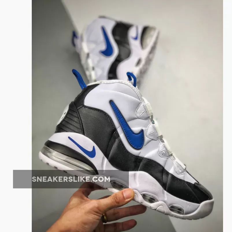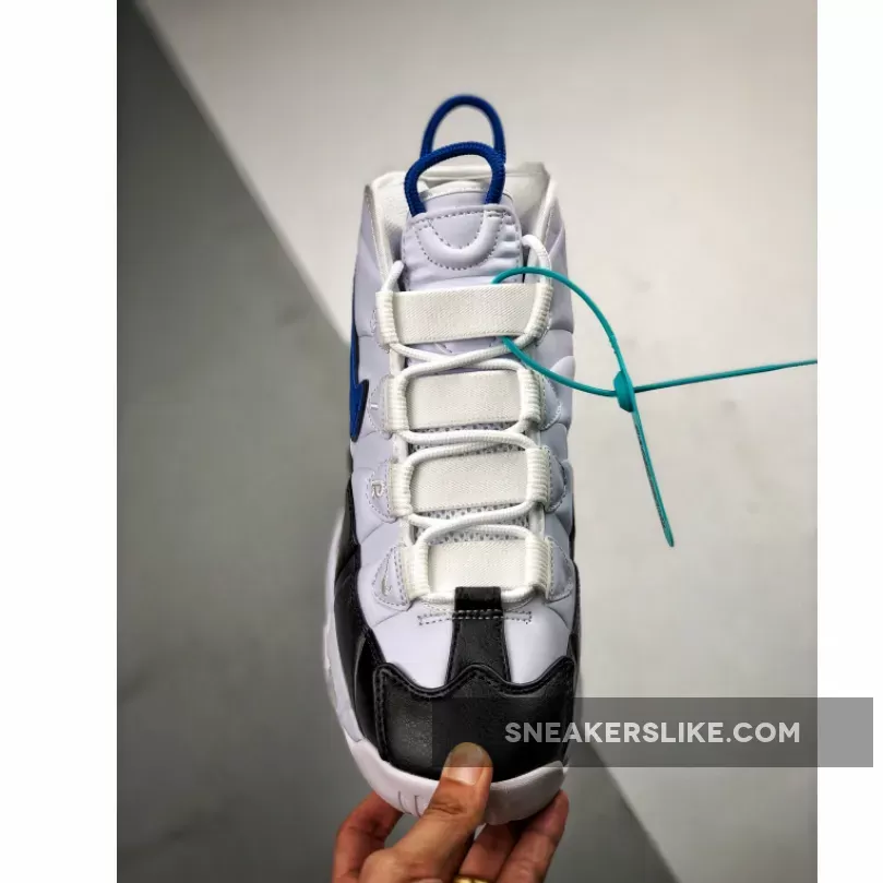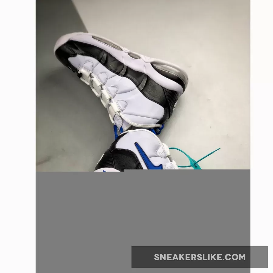This iteration of the Nike Air Max Uptempo features a White leather upper with Black nubuck overlays. Giving off that Magic vibe are Royal Blue accents on the Swoosh logos and pull tabs completed with a solid White rubber sole.