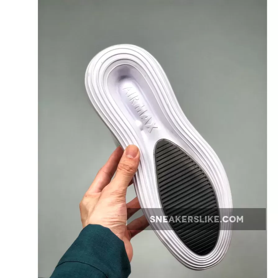 This offering features a White leather upper detailed with a Chrome oversized “MAX” lettering on the outer lateral side, and “AIR” on the inner. Black detailing completed with a full-length 720 Air bag completes the design.