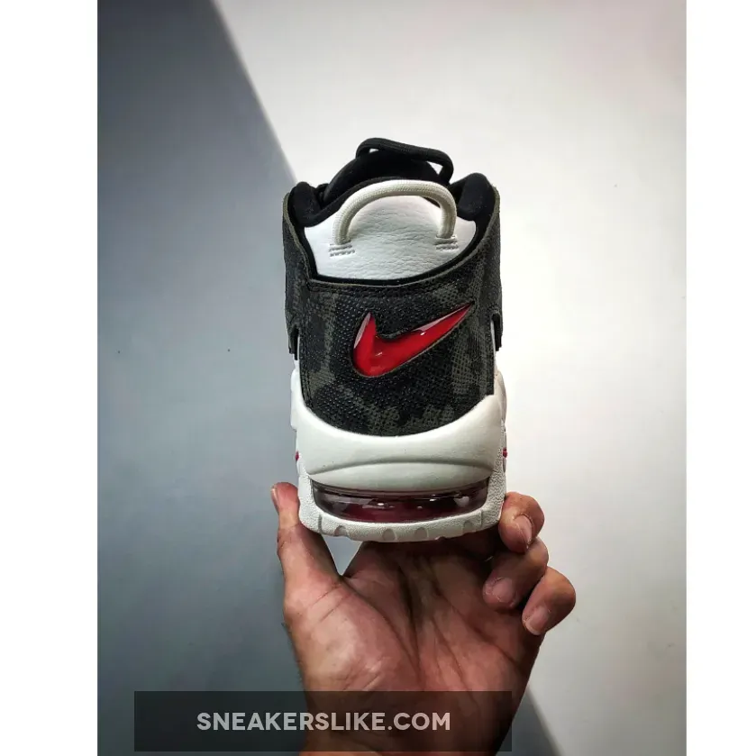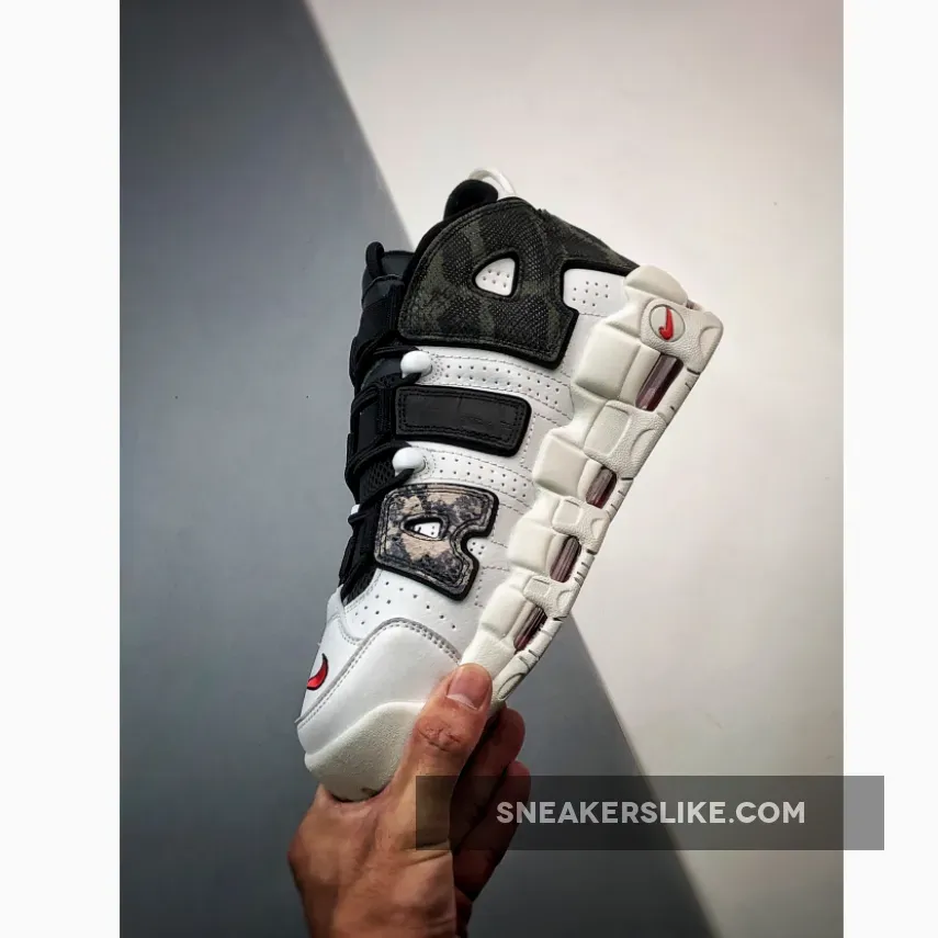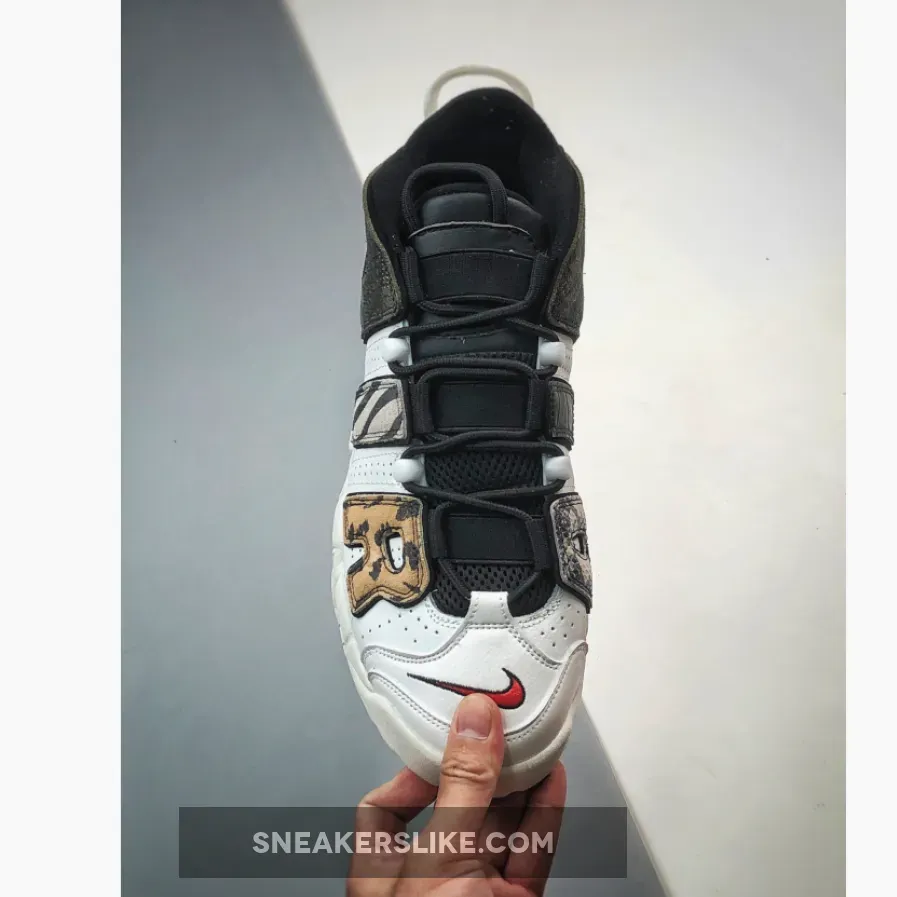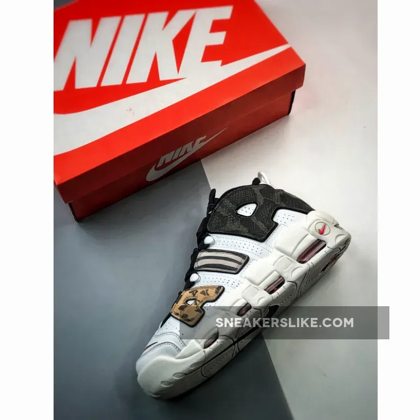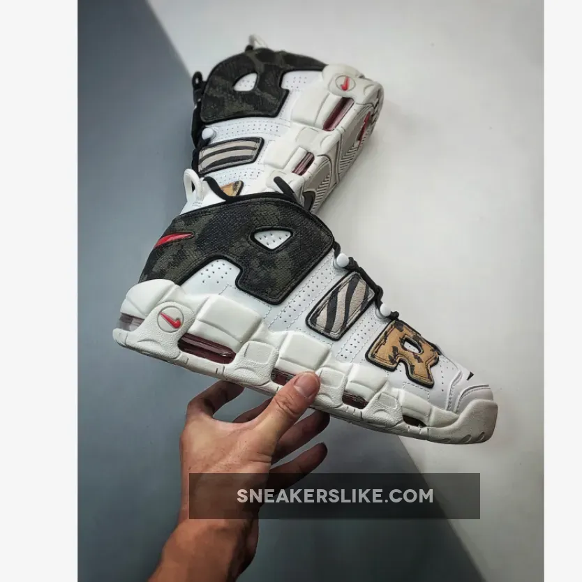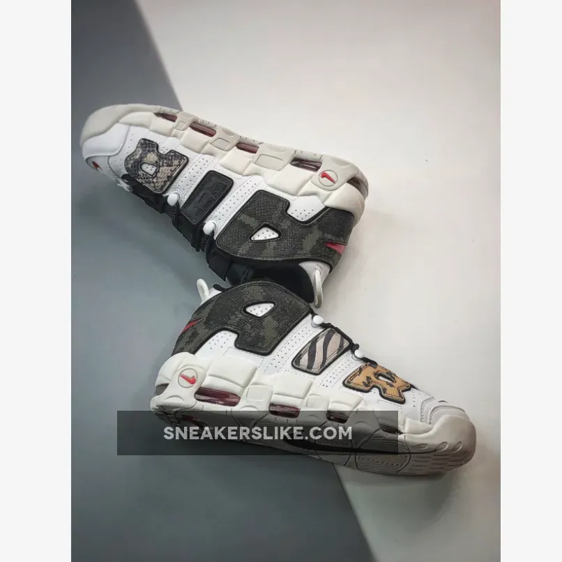 From a first look, we see that this Nike Air More Uptempo “Animal” features a clean white perforated leather base with contrasting black tongues and laces. Elevating the signature oversized “AIR” branding are various exotic prints such as snake, zebra, and cheetah. Rounding out the final details are the slash marks on the tongues, and the red contrasting accents seen throughout.