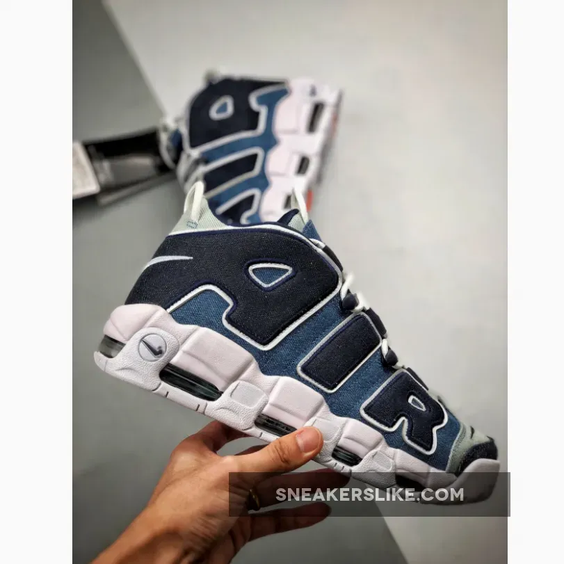 The mid-’90s hoop classics run the gamut of denim styles, thanks to an ultra-faded light wash on the toe, heel, and tongue, a standard-issue medium blue serving as the midfoot’s base, and an ultra-dark selvedge style blue on the signature “AIR” branding and toe cap. The only denim deviant is served up by the throat, which opts for a navy blue mesh for the sake of breathability, while a small red Swoosh is embroidered on the tongue.