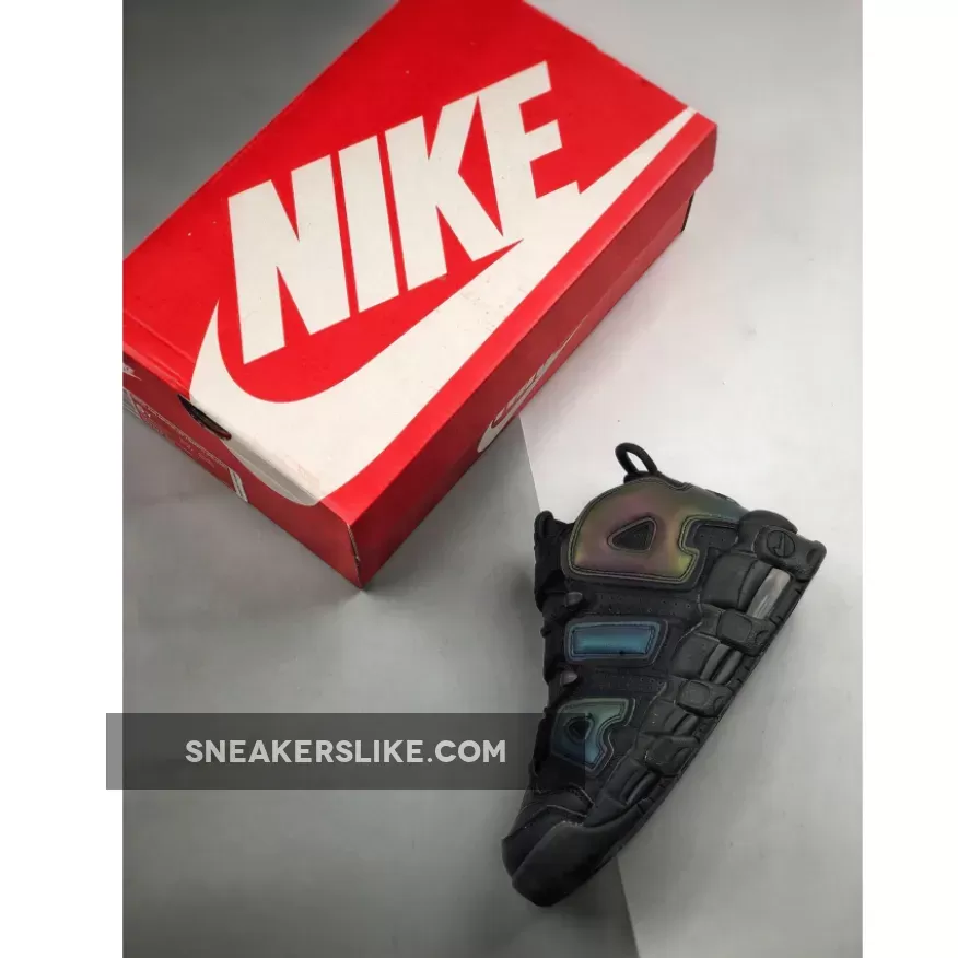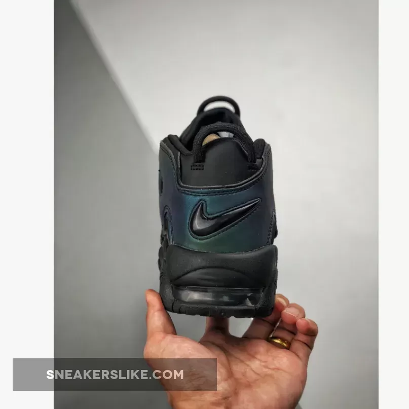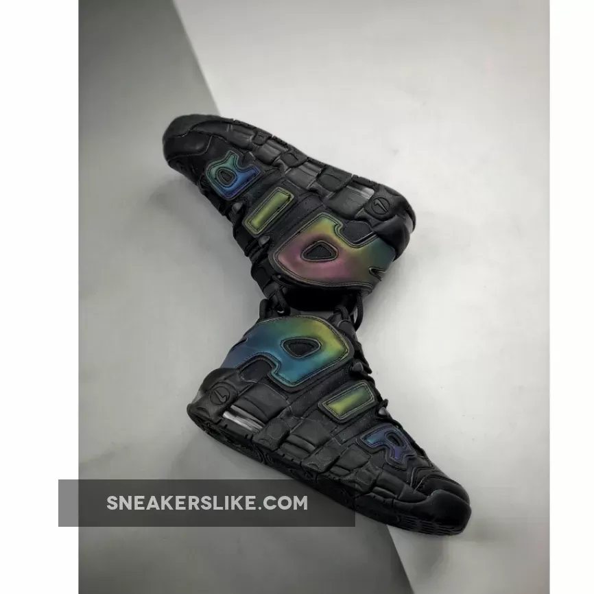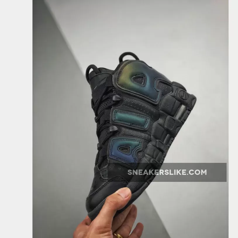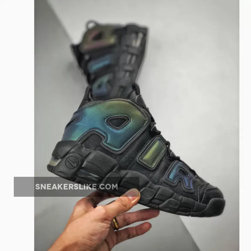 Covered in a black leather throughout the majority of the upper, this Air More Uptempo is then hit with perforations for some added breathability. The highlight of this colorway is the reflective 3M detailing on the “AIR” branding on the side panels as well as on the heel which come to life when the shoe is hit by a flash of light. A black midsole and rubber outsole complete the look on this eye-catching Air More Uptempo.