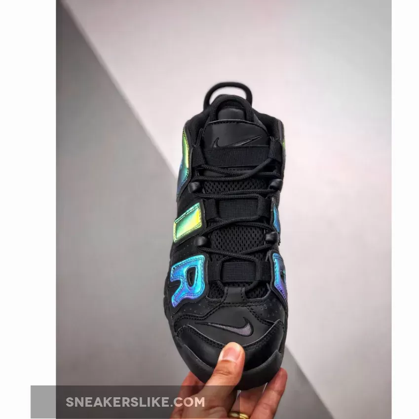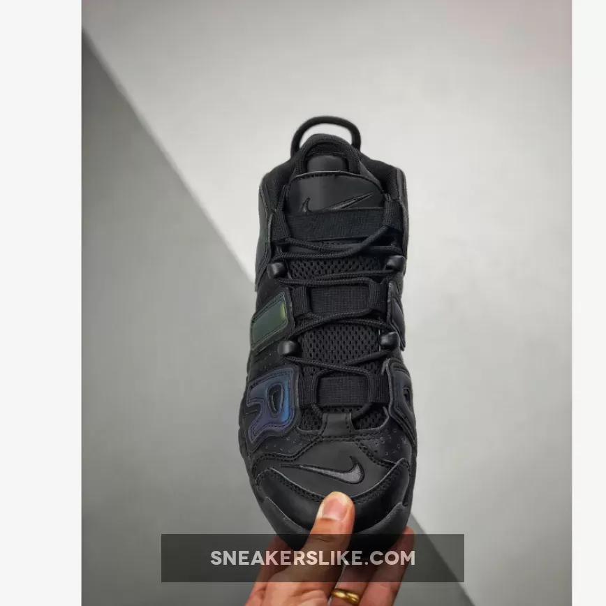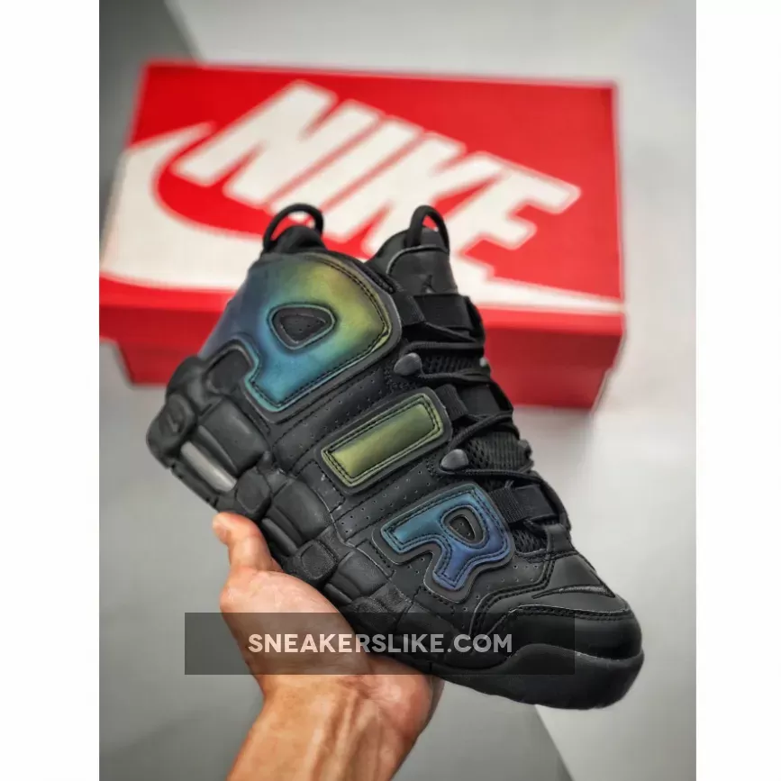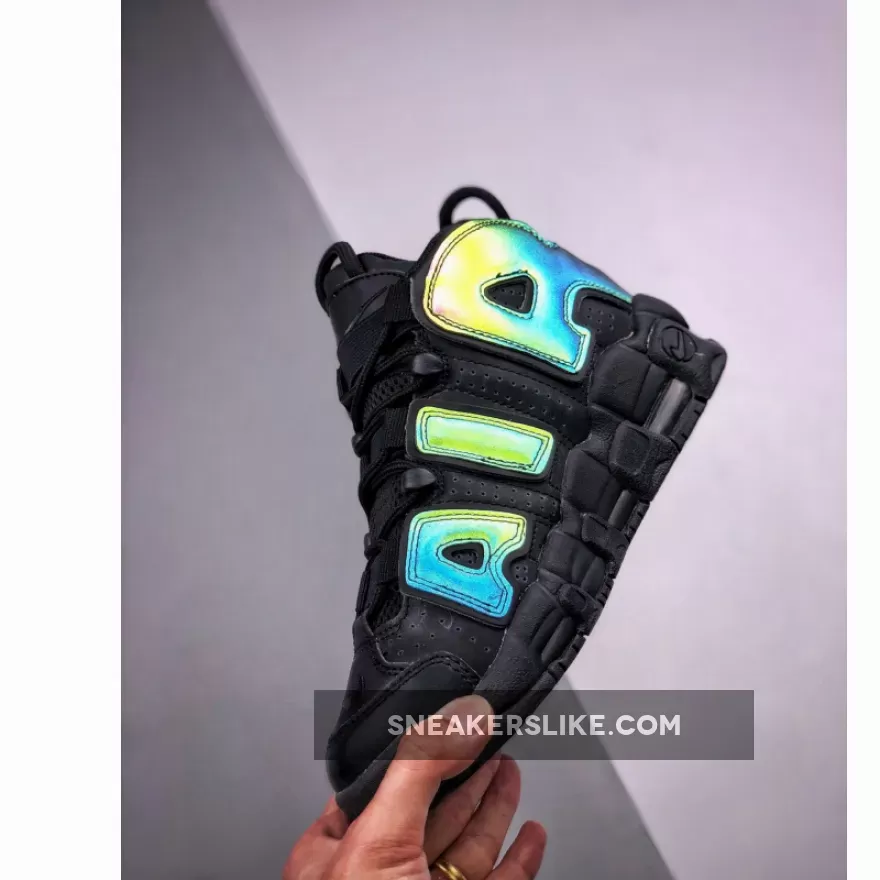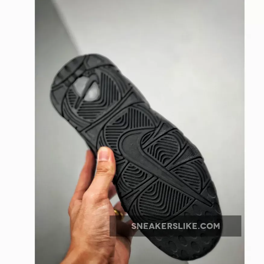 Covered in a black leather throughout the majority of the upper, this Air More Uptempo is then hit with perforations for some added breathability. The highlight of this colorway is the reflective 3M detailing on the “AIR” branding on the side panels as well as on the heel which come to life when the shoe is hit by a flash of light. A black midsole and rubber outsole complete the look on this eye-catching Air More Uptempo.
