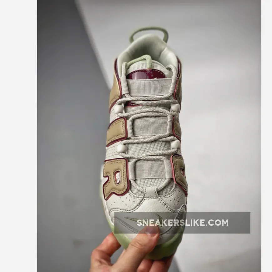 Making a bold statement is easy with the Nike Air More Uptempo Tan Beetroot. This bold and vibrant sneaker has all the fan-favourite features. The fun oversized graffiti-style bubble font Air branding is dressed in mocha and comes with chocolate brown lining.