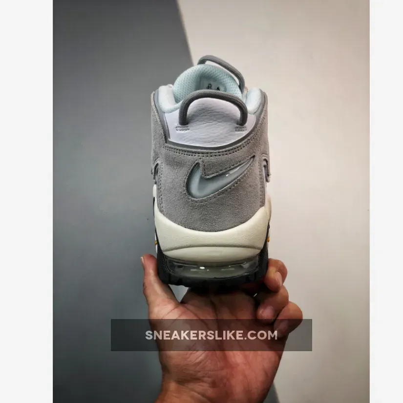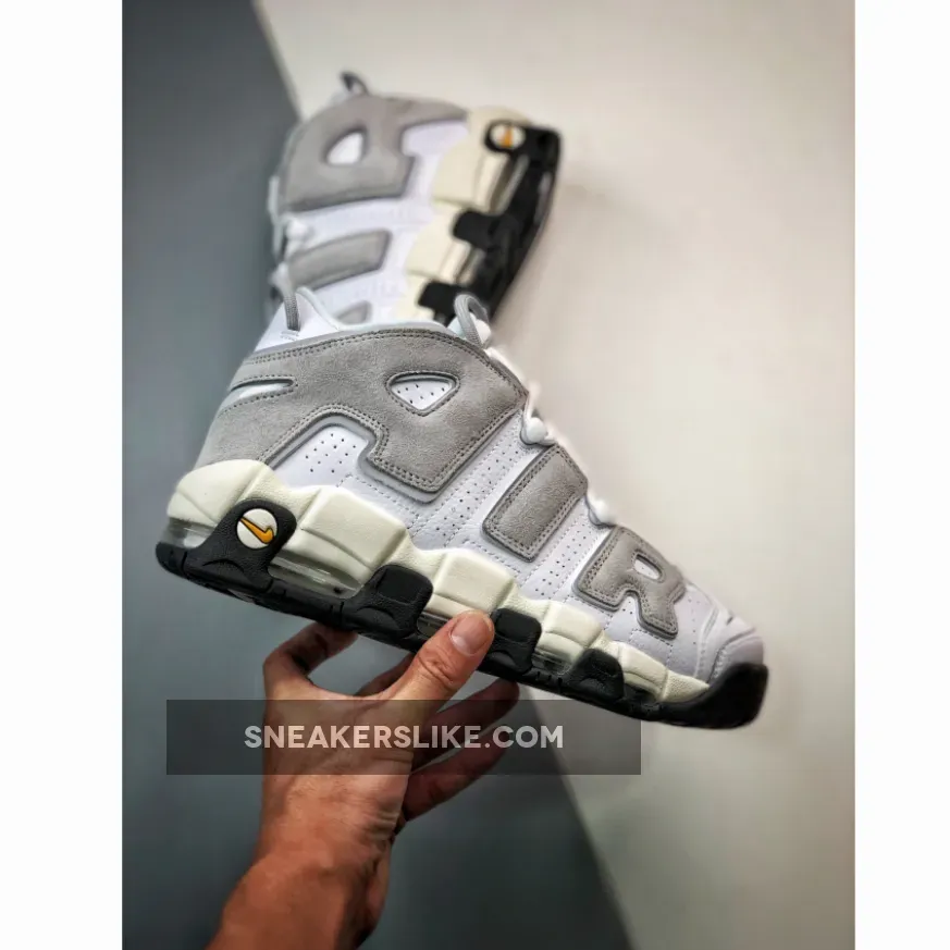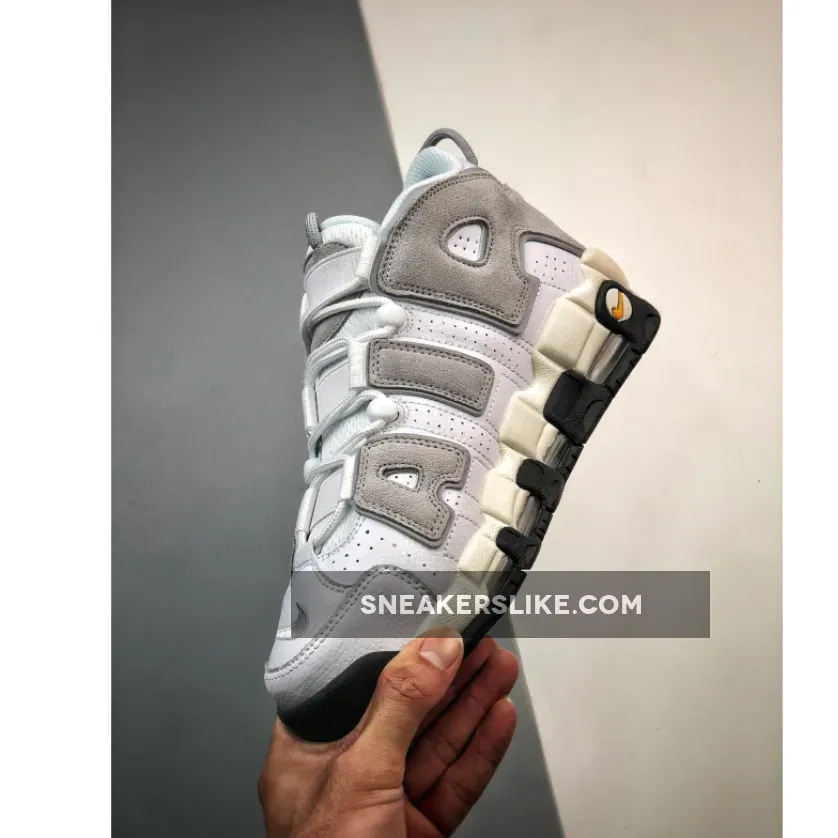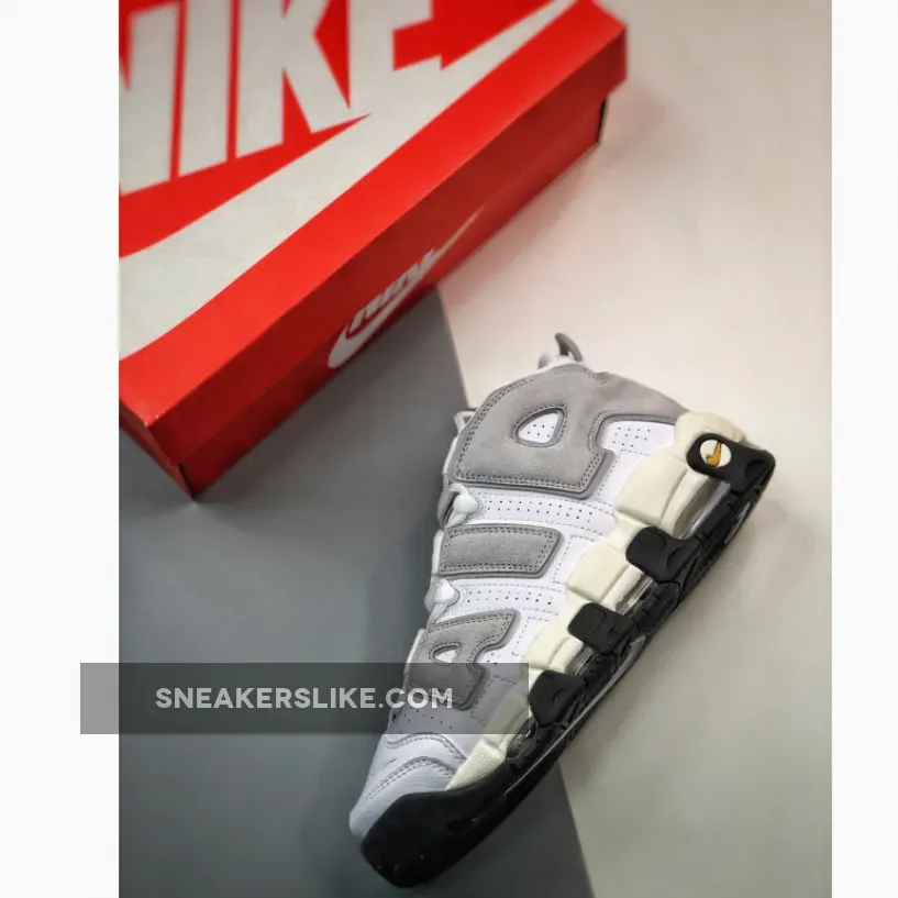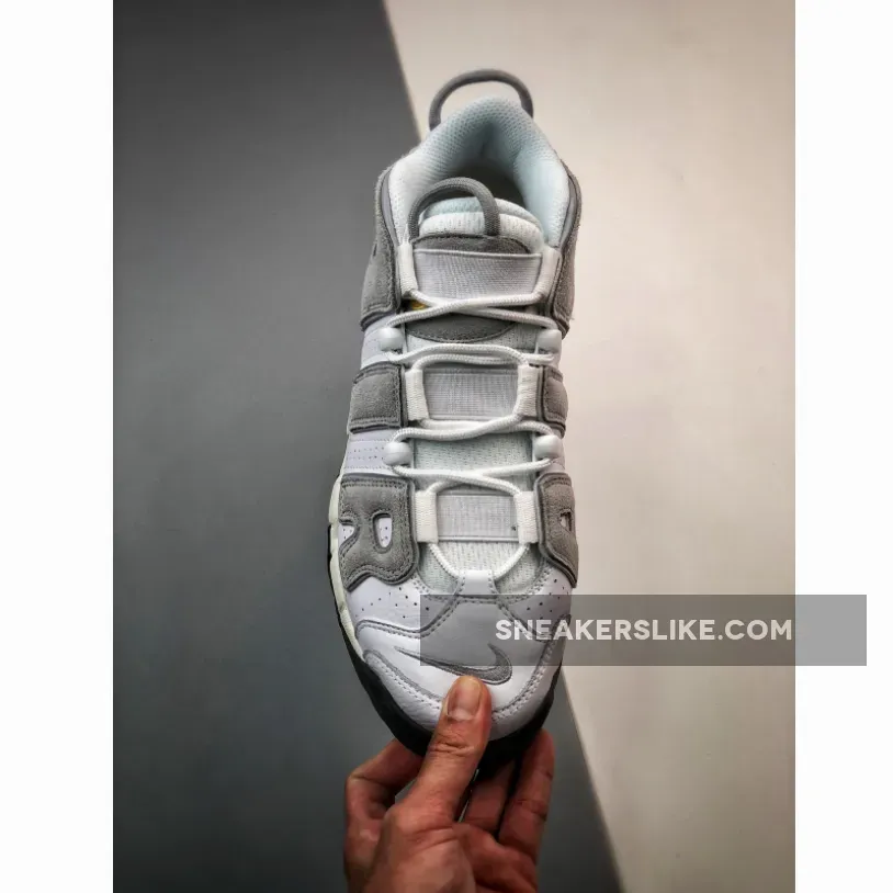 The ever-young 26-year-old Nike Air More Uptempo has just released a neutral colourway that will go with anything in your closet. Meet the Nike Air More Uptempo White Grey Black. The eye-catching details on this Air More Uptempo are the hairy grey suede oversized “AIR” branding on both sides of the shoe. A lighter shade of grey tumbled leather covers the rest of the upper. The lacing system is pure white, matching the mesh tongue. An embroidered grey mini Swoosh can be found on the toe box while Nike Air branding in white stands out against a golden brown insole. Cop the Nike Air More Uptempo White Grey Black and always be first in line for the latest Nike sneaker releases.